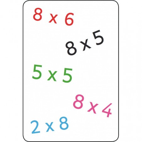 Contenu du jeu : 42 cartes, 10 cartes Tables de multiplication, 1 guide Trucs et astuces de mémorisation, règles du jeu.