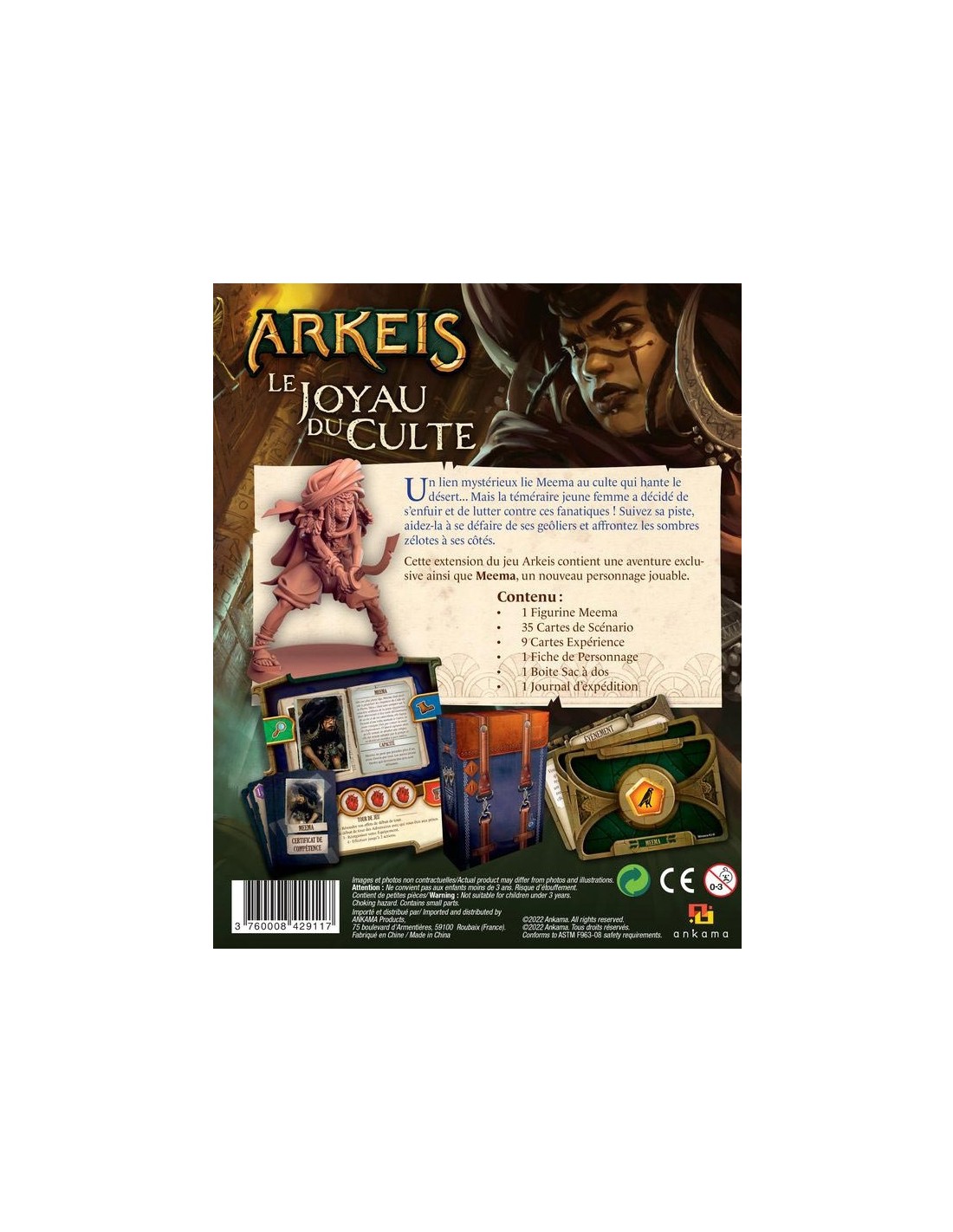 Un lien mystérieux lie Meema au culte qui hante le désert... Mais la téméraire jeune femme a décidé de s’enfuir et de lutter contre ces fanatiques ! Cette extension du jeu Arkeis contient une aventure exclusive ainsi que Meema, un nouveau personnage jouable.