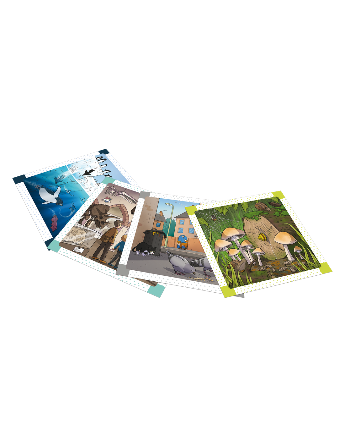 Les joueurs actifs observent deux cartes qui comportent 6 différences, puis doit, de mémoire, en citer autant qu’indiqué par le dé ! Si le but est atteint, le joueur remporte la carte. Celle ou celui qui en a le plus à la fin de la partie la gagne. Chaque illustration se trouve en 4 exemplaires, pour jouer jusqu’à quatre. « Dans la Nature » contient des animaux du monde entier, du jardin à l’Antarctique !