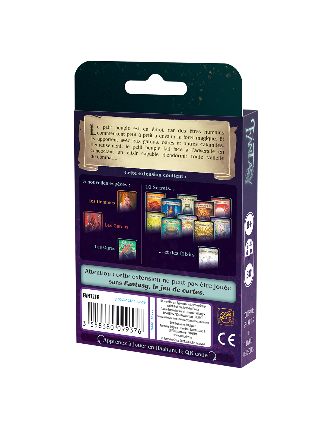 Usez de vos charmes et décrochez le titre de grand mestre sylvestre !Échangez des cartes avec vos adversaires ou volez-en, utilisez leurs pouvoirs spéciaux et faites-vous élire chef du petit peuple de la forêt ! Fantasy 2 introduit 3 nouvelles factions, pour renouveler les parties. Fantasy 2 contient 56 cartes et de nouvelles règles.