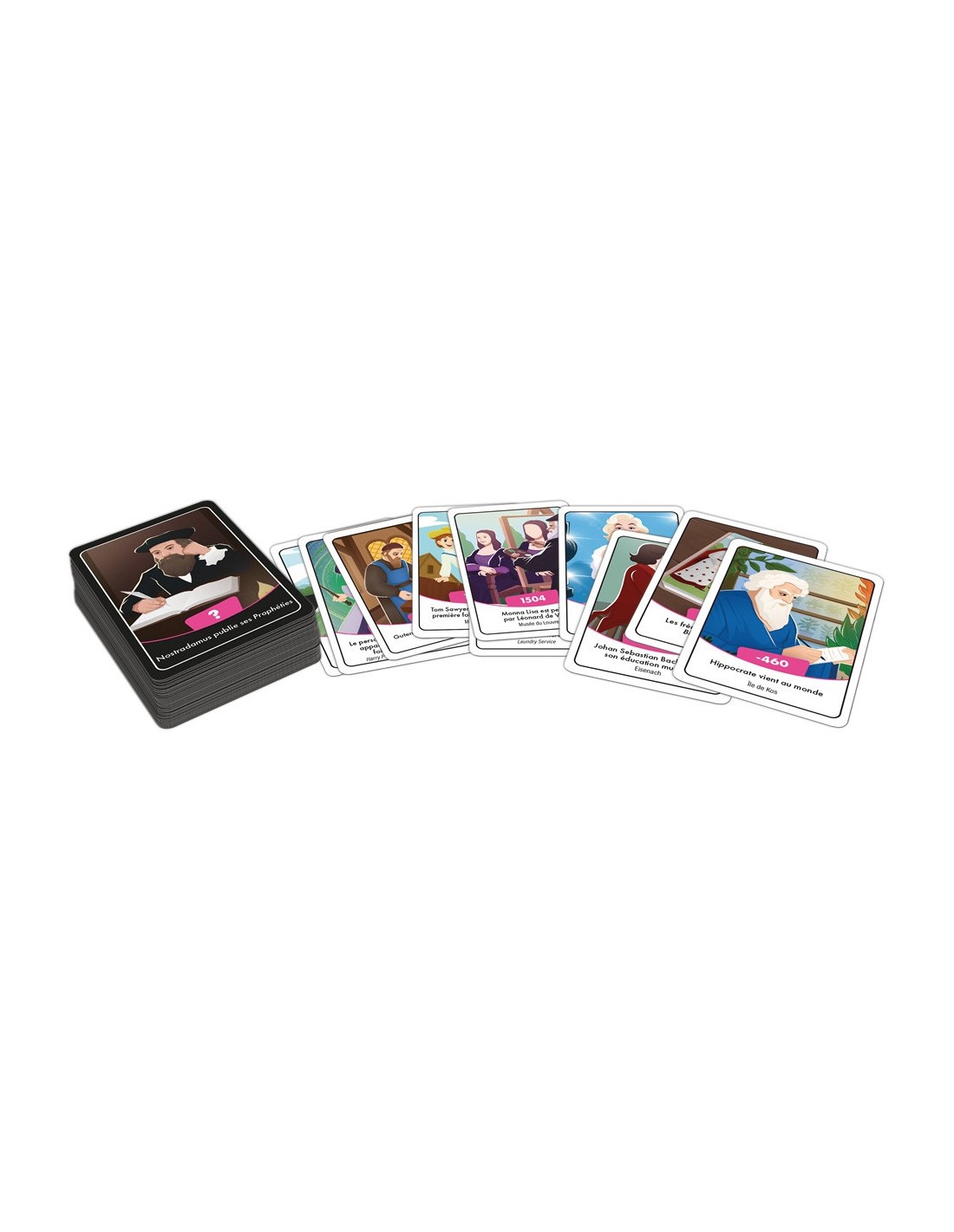 Pas besoin d’être ultra calé en histoire, pour remettre dans l’ordre chronologique les personnages célèbres de cette nouvelle version de Timeline. Classez les personnages célèbres sur la frise, en utilisant vos connaissances et votre logique. Débarrassez-vous de toutes vos cartes pour gagner.Se mélange facilement aux autres boîtes thématiques pour varier les plaisirs !