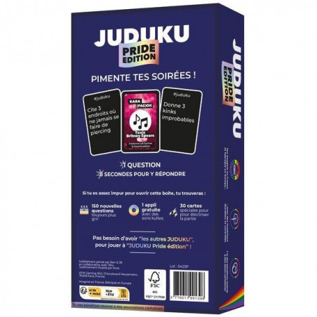 Le jeu Juduku est conçu pour les joueurs ouverts d'esprit, spontanés et prêts à explorer les côtés les plus insolites et impertinents de leur personnalité. Ici La version "Pride Edition" de Juduku, proposé par Ben et J.-B. en collaboration avec Têtu. Une adaptation spéciale du jeu qui s'adresse spécifiquement à la communauté Lgbtqia+ et célèbre la diversité, l'inclusion et la fierté.