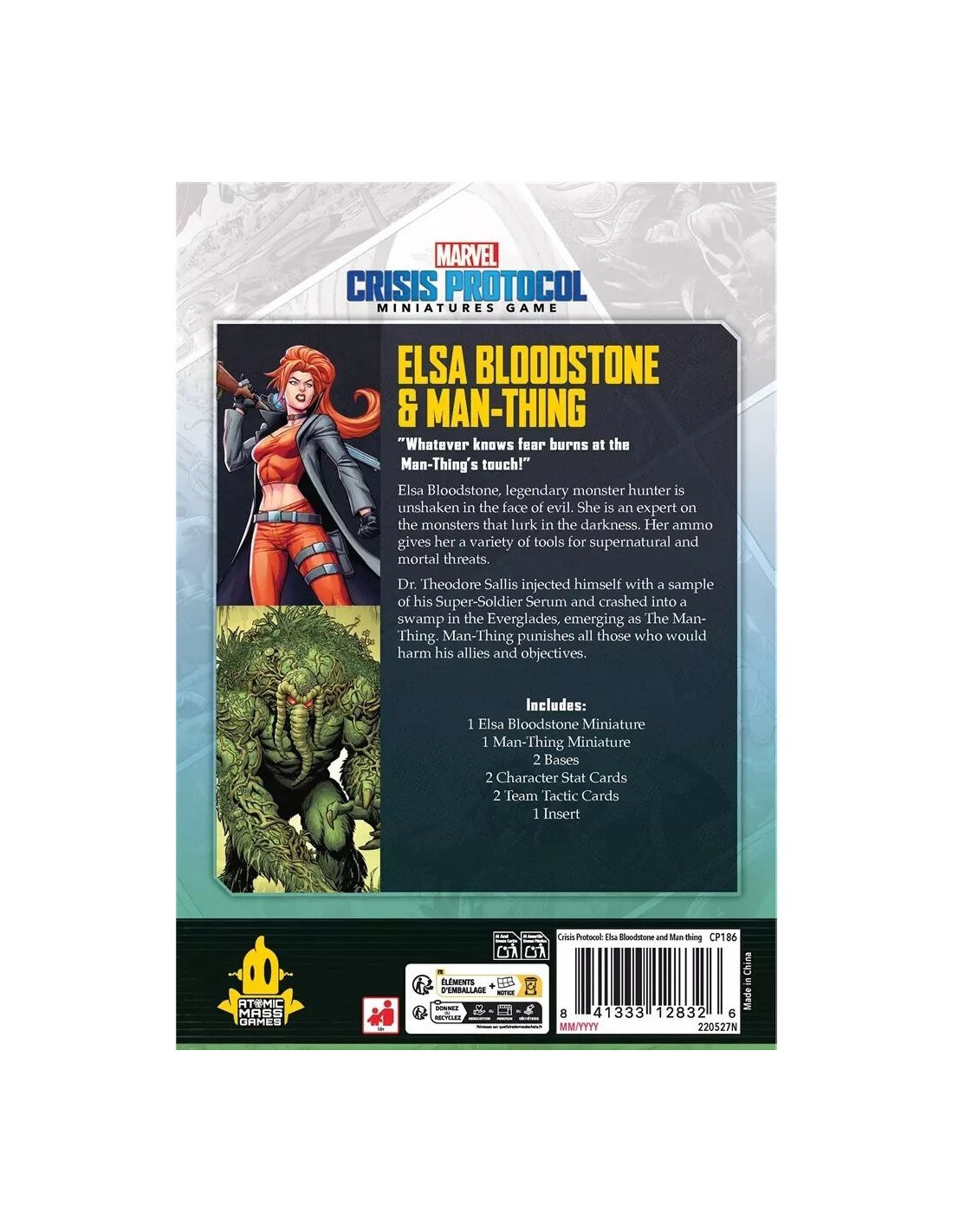 Man-Thing est un tank durable, qui punit les ennemis pour les dommages qu'ils infligent à ses alliés. Elsa Bloodstone, dans son style légendaire de chasseuse de monstres, possède des attaques à distance qui permettent de faire face aux menaces naturelles et surnaturelles. Ces deux personnages apportent un nouveau chapitre passionnant à Marvel : Crisis Protocol et montrent à quel point le jeu peut être enrichi.