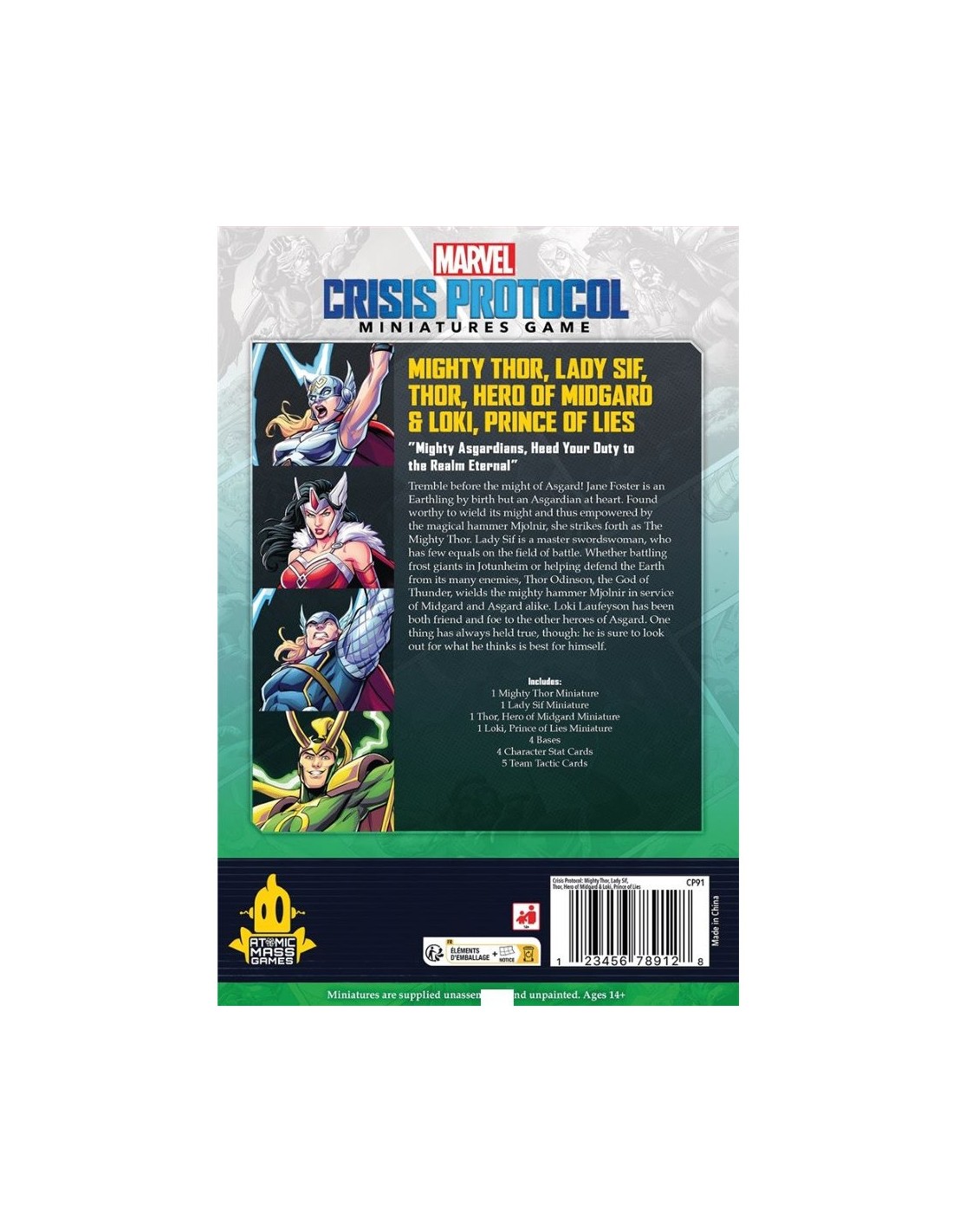 « Vous puissants Asgardiens, faites votre devoir envers le Royaume Éternel. » Tremblez devant la puissance d’Asgard ! Jane Foster est une Terrienne de naissance mais une Asgardienne de coeur. Reconnue digne de porter le marteau magique Mjolnir et investie de son pouvoir, elle combat en tant que Mighty Thor. Lady Sif est experte dans l’art de l’épée et peu de combattants sont capables de rivaliser avec elle sur le champ de bataille.