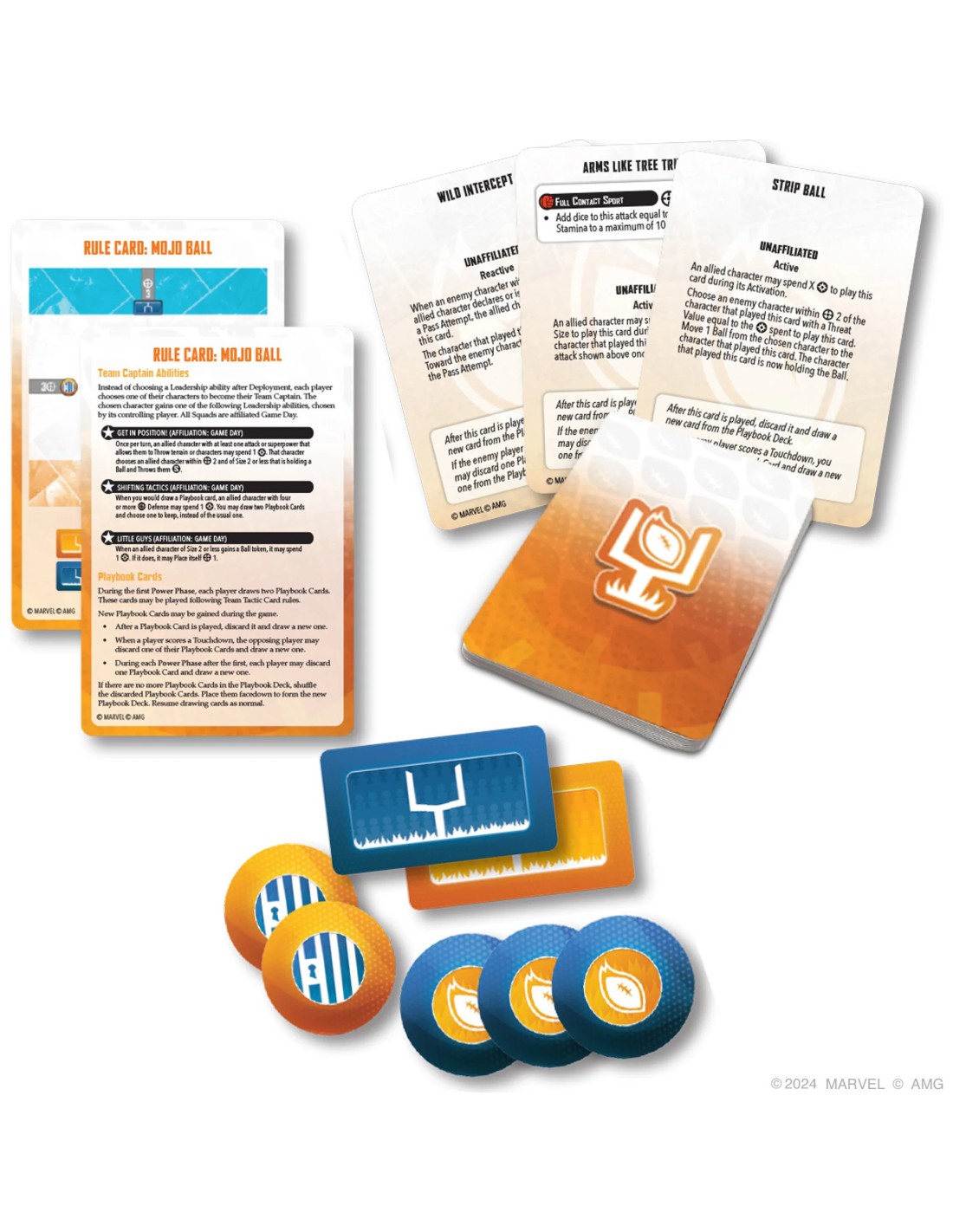 Entrez dans le Mojoverse et jouez à un autre type de football fantastique avec vos super-héros et méchants préférés ! Ce pack pour Marvel : Crisis Protocol comprend des règles qui enferment deux équipes dans une lutte tactique pour déplacer leurs personnages en position afin de marquer des touchés pour des points de victoire.Chaque camp doit puiser profondément dans son jeu de cartes Playbook et utiliser au mieux la capacité unique de son capitaine d'équipe s'il espère remporter la victoire sur ce terrain de jeu surpuissant !