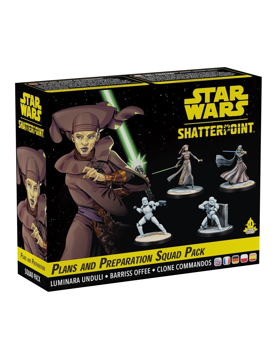 Ce pack ajoute une nouvelle escouade composée du Maître Jedi Luminara Unduli, Padawan Barriss Offee et deux Republic Clone Commandos à Star Wars : Shatterpoint que les joueurs peuvent jouer immédiatement ou utiliser aux côtés d'autres personnages pour créer leur propre escouade personnalisée. En plus des miniatures magnifiquement sculptées des quatre personnages, les joueurs trouveront également toutes les cartes de statistiques, d'ordre et de position dont ils ont besoin pour donner vie à ces personnages sur la table.