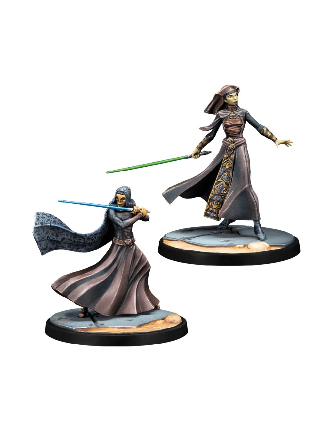 Une sage protectrice et son apprentie s'avancent ! Reconnue pour sa grande patience, la discipline et la capacité de la Maître Jedi Luminara Unduli à rester calme sous la pression en font une redoutable duelliste au sabre laser. Maîtresse de la forme de combat Soresu, elle a transmis ses compétences à son padawan, le Mirialan Barriss Offee, qui l'accompagne dans ses missions à travers la galaxie.