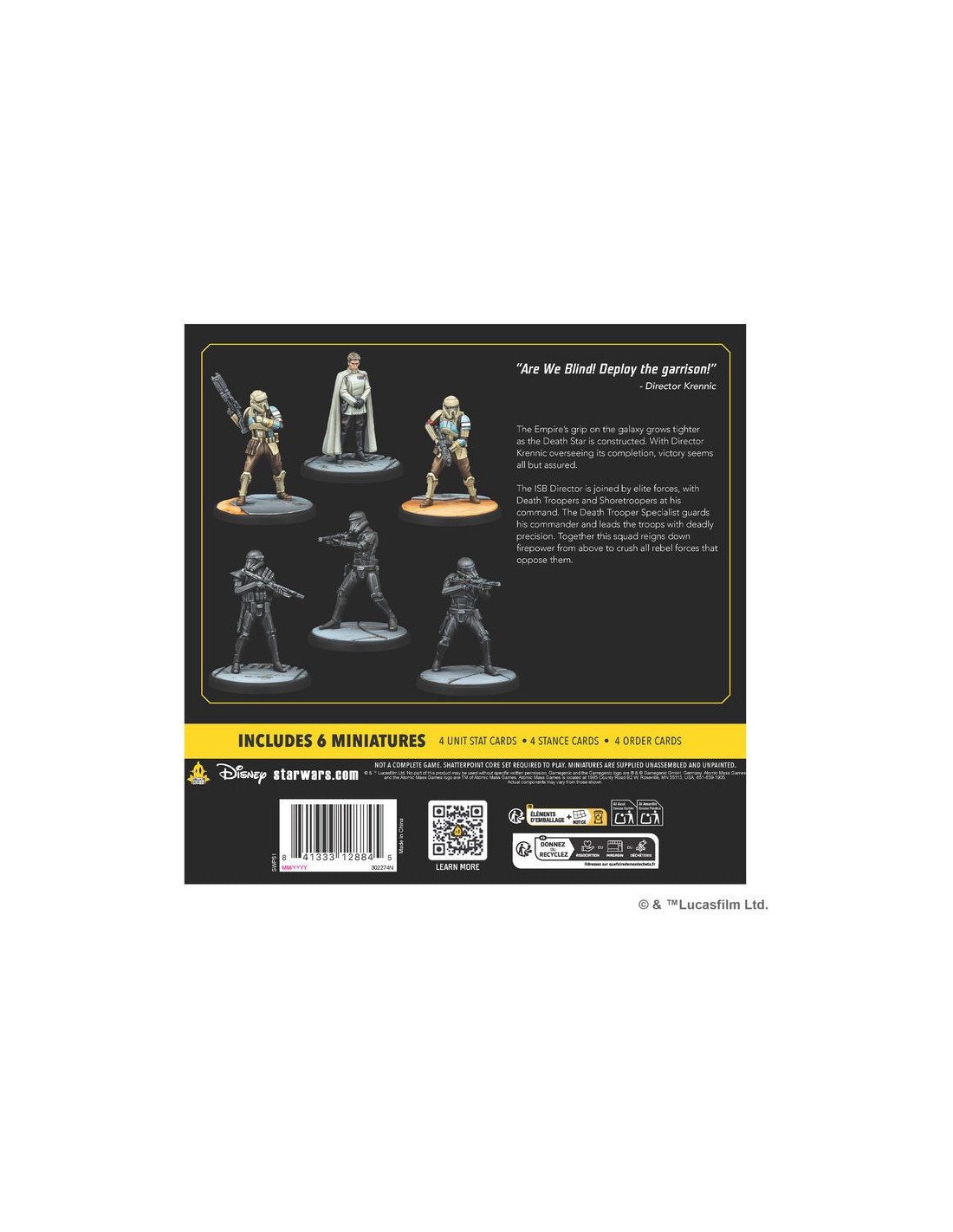 Directeur Krennic, Star Wars Rogue OneLe pack d'escouades Deply the Garrison amène les forces d'élite de l'Empire en première ligne. Le directeur Krennic, rendu populaire par Rogue One : A Star Wars Story™, est rejoint par les imposants Death Troopers et les Shore Troopers instantanément emblématiques.