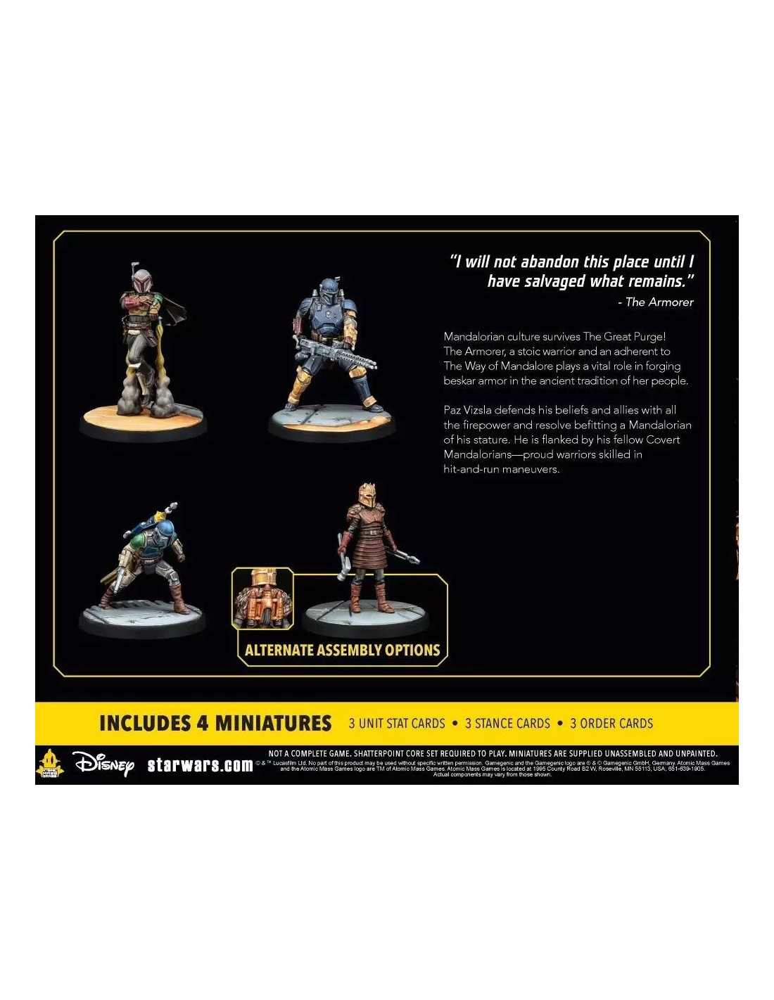Din Djarin Le pack d'escouade This Is The Way (Mandalorian Covert) amène les personnages préférés des fans, l'Armurier, Paz Vizsla, et les Mandaloriens cachés sur les tables de jeu ! Avec des poses thématiques et un gameplay engageant, ce pack de personnages ajoute plus de Mandaloriens à Star Wars™ : Shatterpoint, offrant aux joueurs et aux amateurs plus de figurines emblématiques pour agrandir leur collection.- Age : à partir de 14 ans