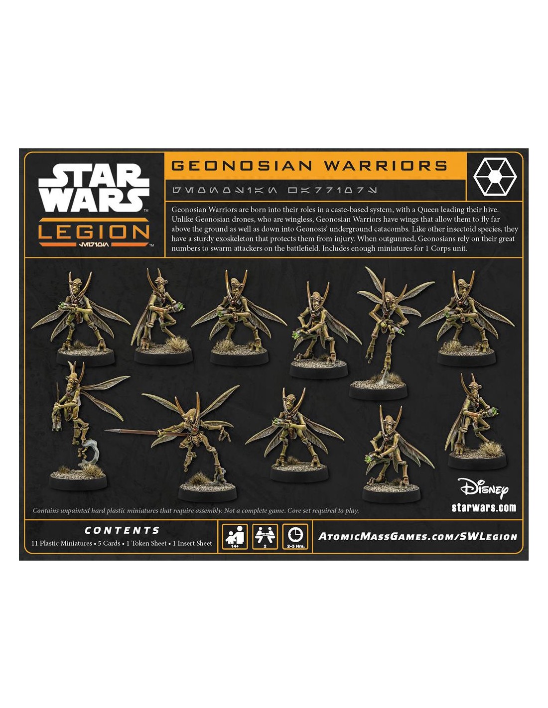 Les guerriers géonosiens rejoignent la cause séparatiste dans cette extension pour Star Wars™ : Legion ! S'appuyant sur leurs exosquelettes robustes pour les protéger du danger et sur leur grand nombre pour essaimer leurs adversaires, les guerriers géonosiens constituent une nouvelle option de corps d'armée imposante pour l'Alliance séparatiste. Cette extension ajoute onze figurines de guerriers géonosiens aux armées des joueurs, dont un chef et huit guerriers géonosiens armés de puissants blasters soniques dévastateurs à courte portée.
