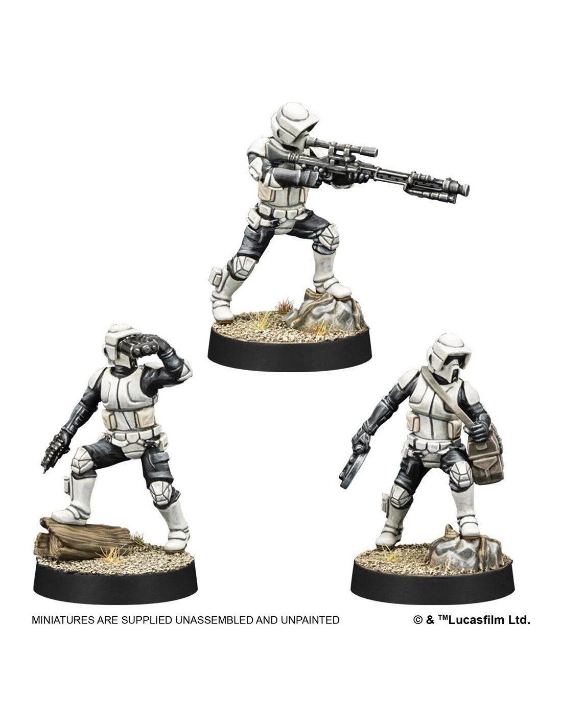 À la tête des unités de reconnaissance des forces de l’Empire, les Scout Troopers Impériaux sécurisent les positions clés et effectuent des missions sensibles. L’extension d’unité Scout Troopers contient 7 figurines, dont 1 Chef Scout Trooper, 4 Scout Troopers et 2 Scout Troopers avec des armes lourdes, qui vous permettront de constituer une unité de Scout Troopers et une unité de Groupe de Combat Scout Troopers.