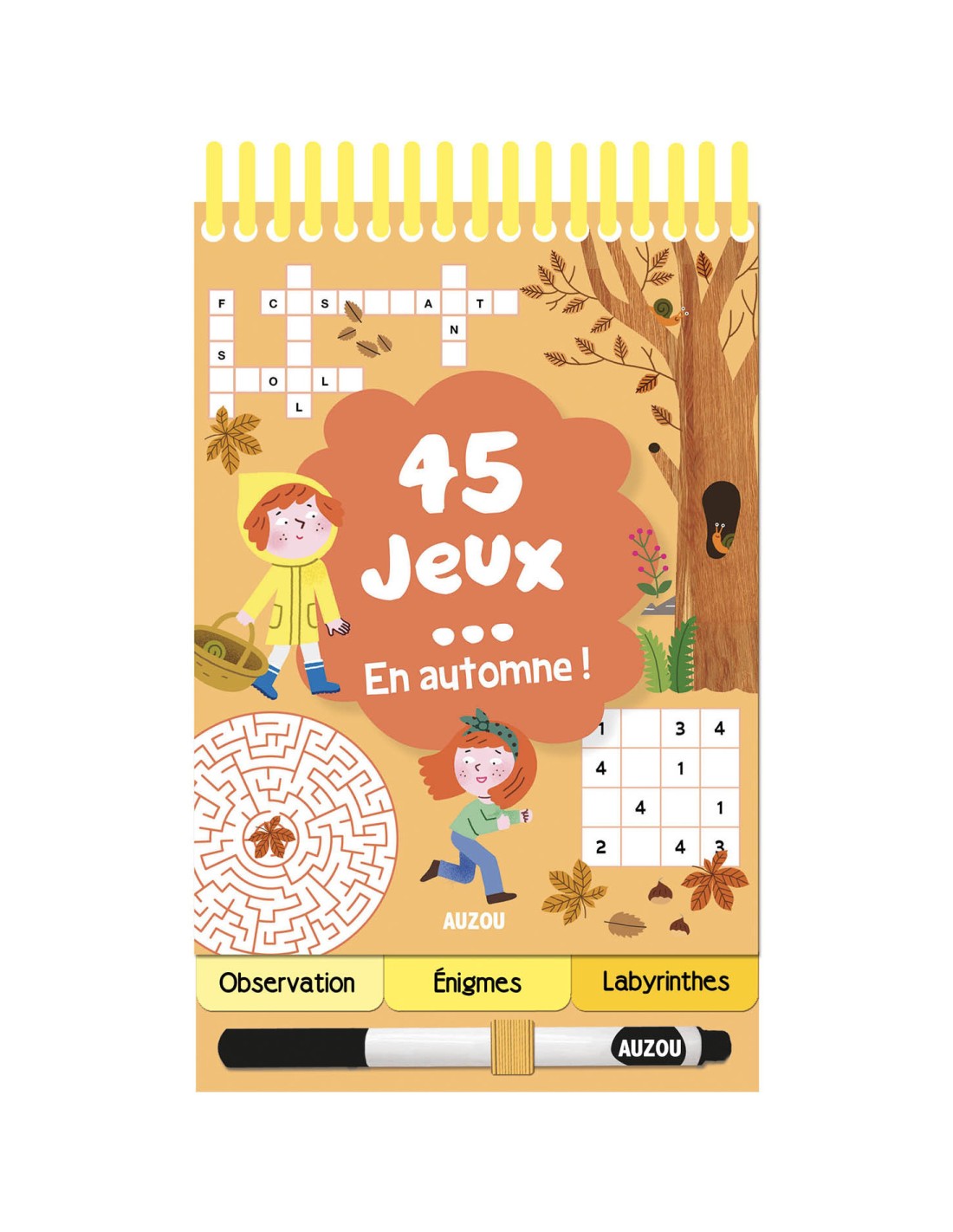 45 jeux, un stylo effaçable et un petit format pratique pour s'amuser partout et à tout moment !