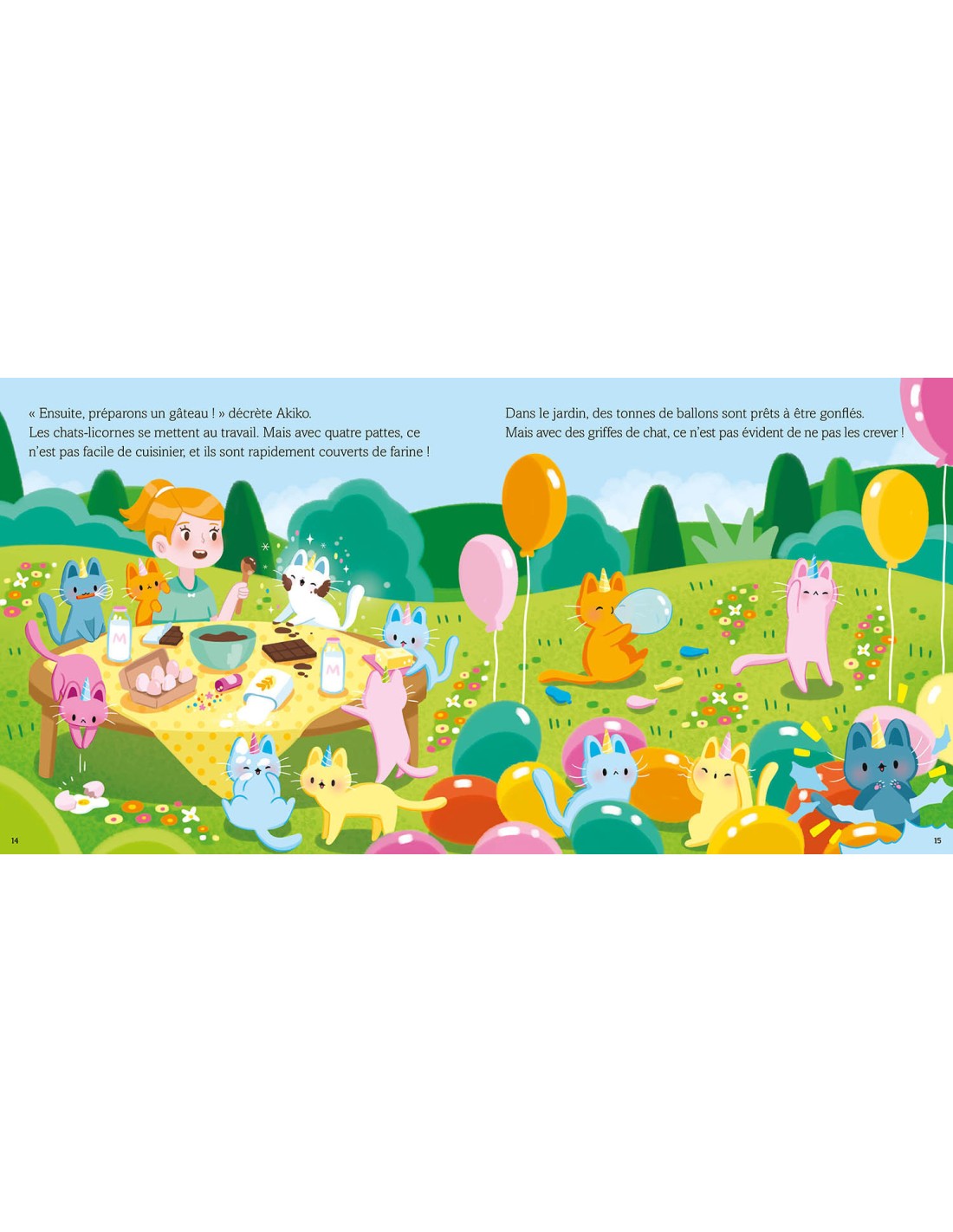 Akiko part pour une nouvelle mission ! Cette fois il va organiser un anniversaire au pays des caticorn : gâteaux, fontaine de sirop, barbapapa pinata etc. Mais la préparation ne se passe pas toujours comme prévu. Thèmes :