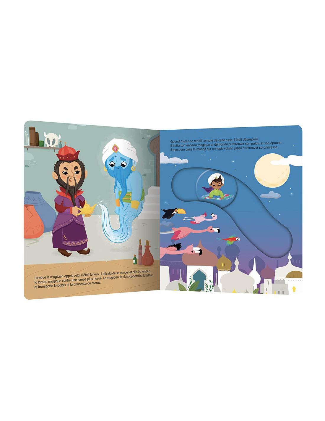 Une (re)-découverte du conte d'Aladin à travers un tout-carton à animer. Aladin, un jeune garçon téméraire, va tout faire pour séduire la belle princesse de Chine. Mais son périple ne sera pas sans embuches ! 6 mécanismes solides et facilesà manipuler pour animer l’histoire au fil des pages.