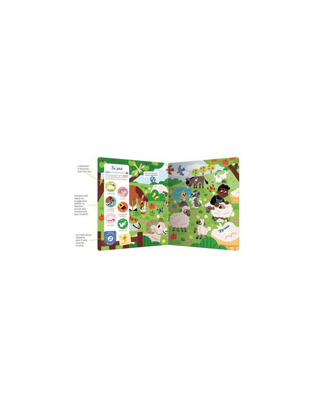 Sur chaque planche, un mode de jeu aléatoire est disponible : il faudra retrouver l'animal ou l'élément auquel correspond le bruit entendu ! Attention aux 2 éléments mystères qui se sont glissés dans le jeu...