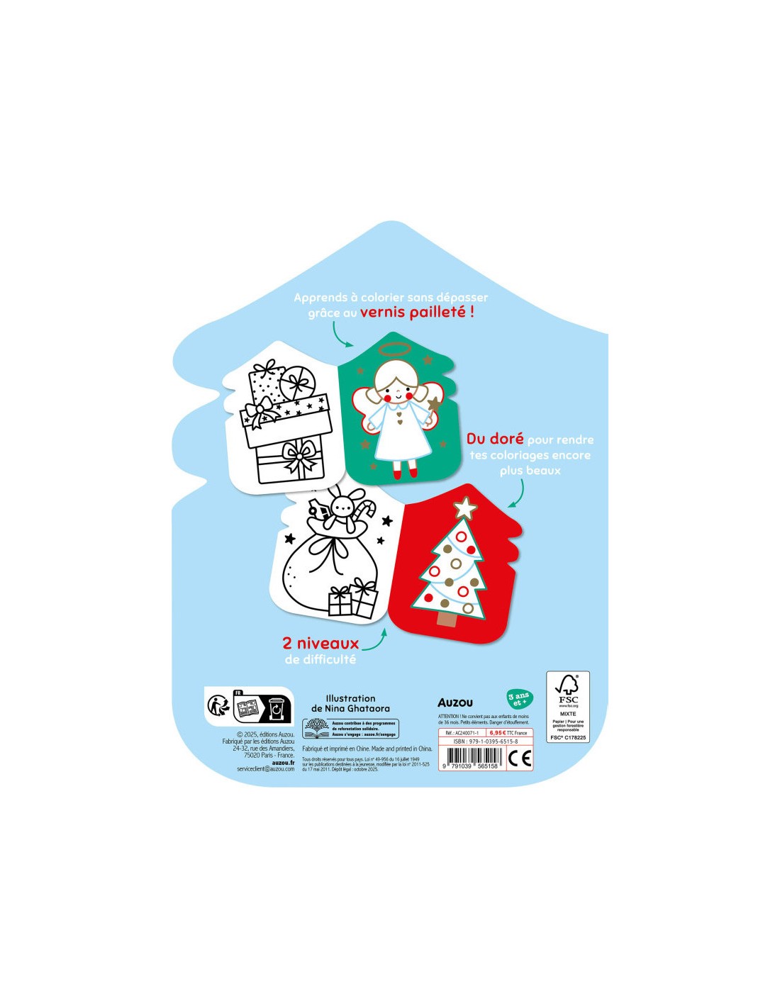 Découvre tes nouveaux coloriages doré sur le thème de Noël avec deux niveaux de difficulté : le premier niveau pour apprendre à bien colorier sans dépasser avec l'aide du vernis à paillettes et le deuxième niveau sans vernis à paillettes pour montrer tes talents !