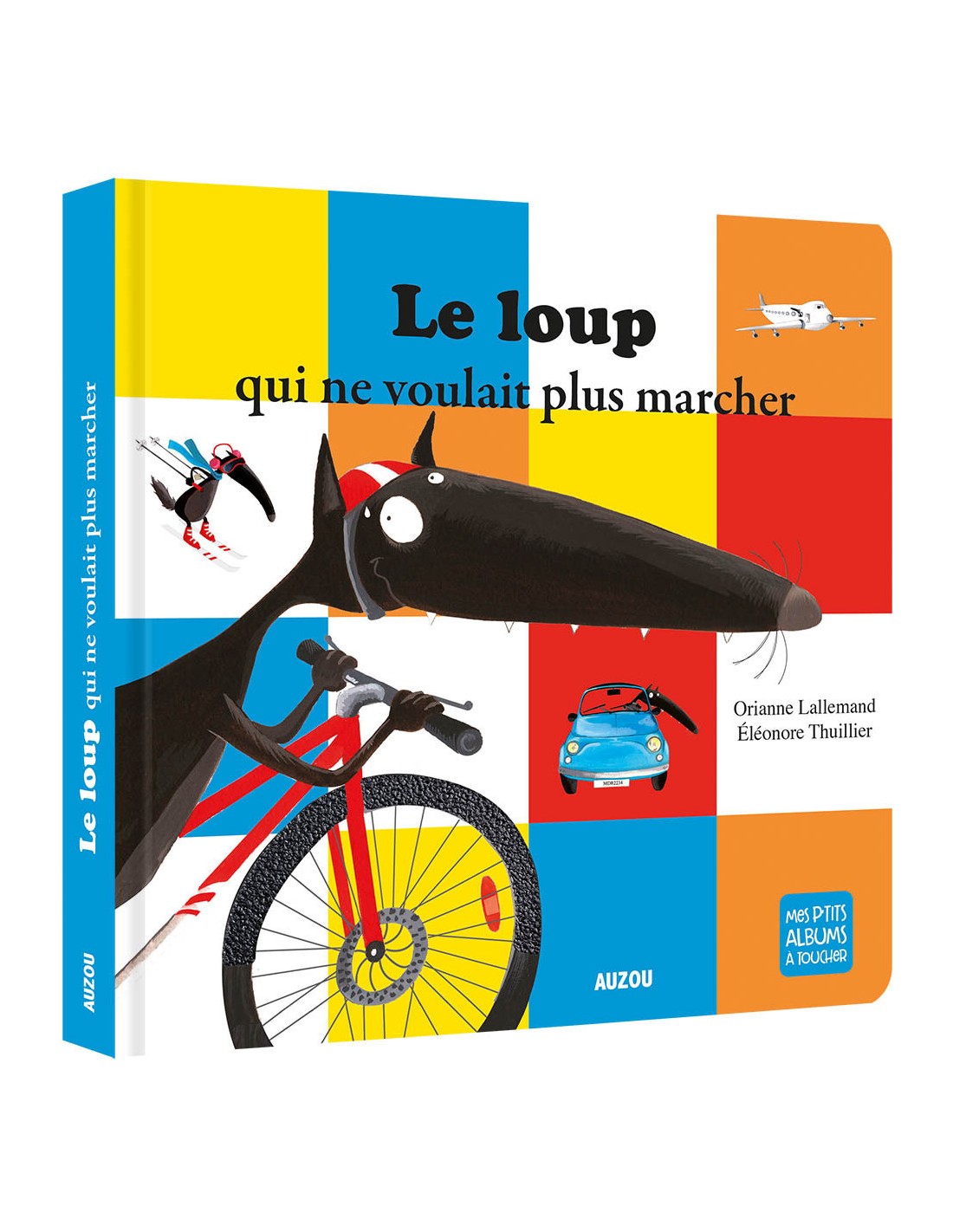 Le loup qui ne voulait plus marcher avec matières à toucher ! 20 pages avec une matière à chaque page : effet pneu de voiture, écharpe en laine, bottes en cuir…