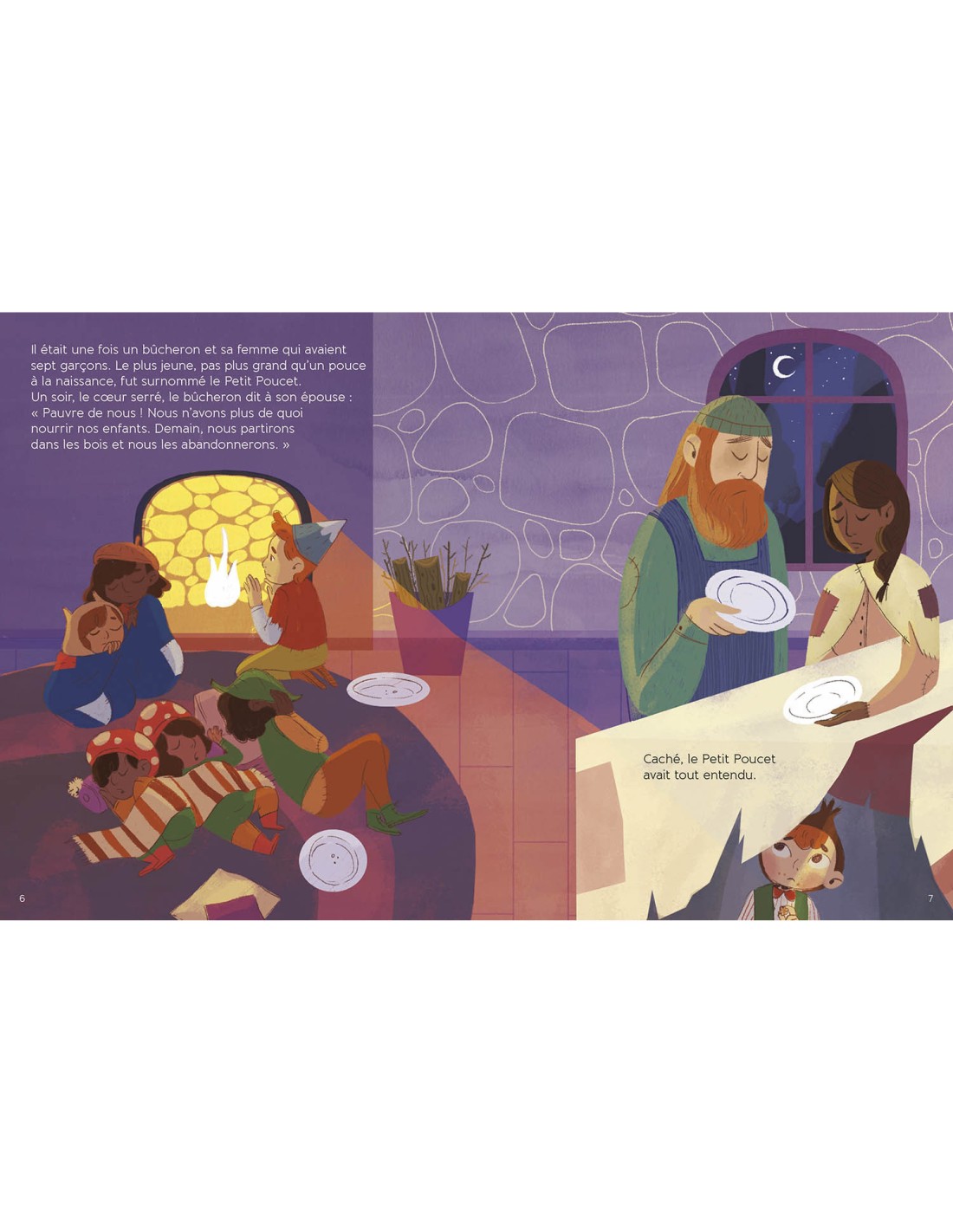 Les pauvres parents du Petit Poucet veulent les abandonner dans la forêt, lui et ses frères. Heureusement, le Petit Poucet pense à tout et va les ramener chez eux.