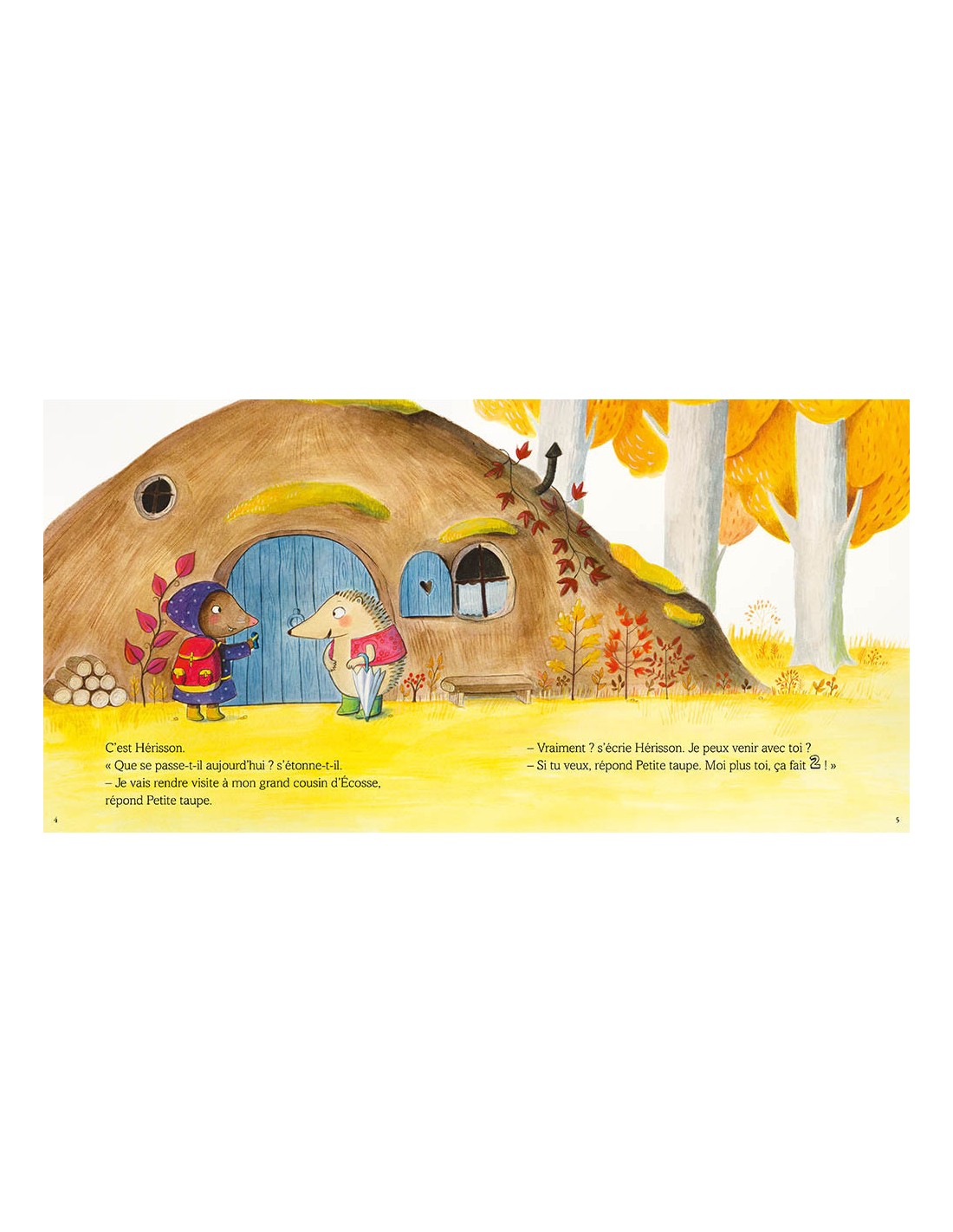 Petite taupe prend son sac et entame son voyage afin d'aller rendre visite à son mystérieux cousin d'Écosse. En chemin, elle croise ses amis. qui se greffent à l'aventure, un par un !
