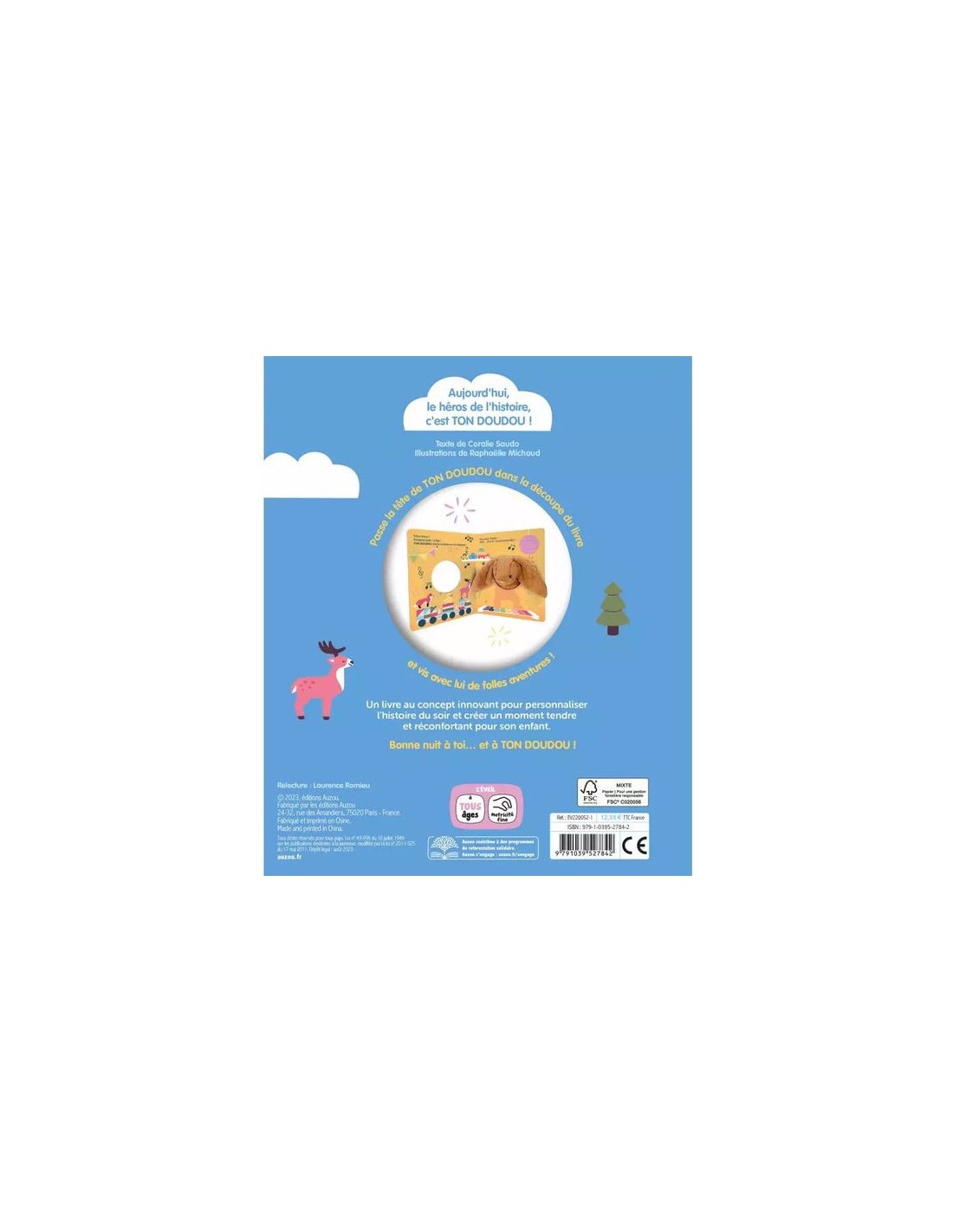 Un livre au concept innovant : passe la tête de ton doudou dans la découpe traversante du livre pour le faire devenir le héros de ton histoire du soir. Une histoire du soir personnalisée pour un moment de partage et de tendresse entre parent et enfant.