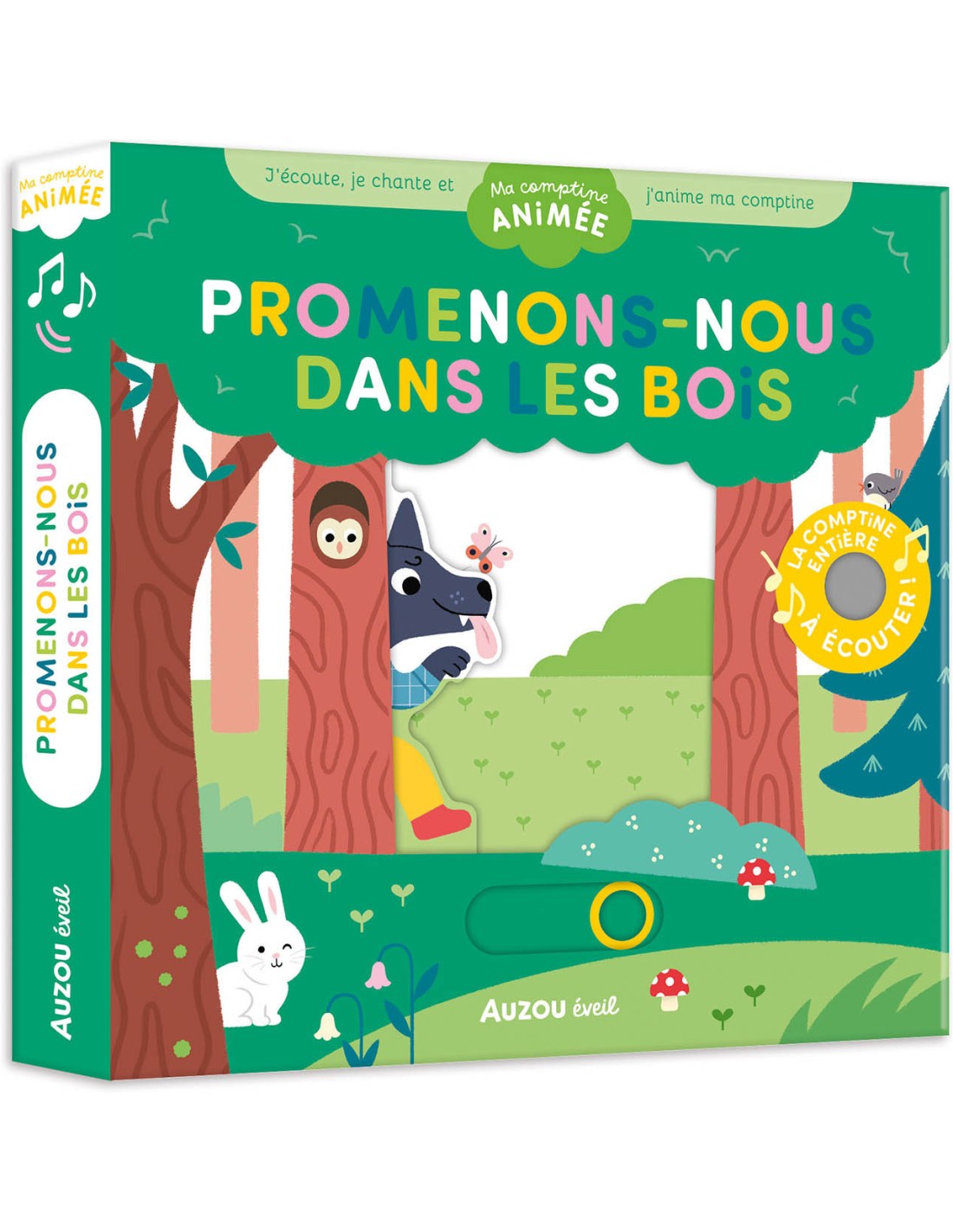 Grâce à la puce sonore sur la première double-page (accessible dès la couverture grâce à une découpe !), écoute et chante ta comptine préférée ; puis tourne les pages pour en animer les paroles à l’aide de 5 mécanismes faciles à activer. La comptine prend vie et sens !