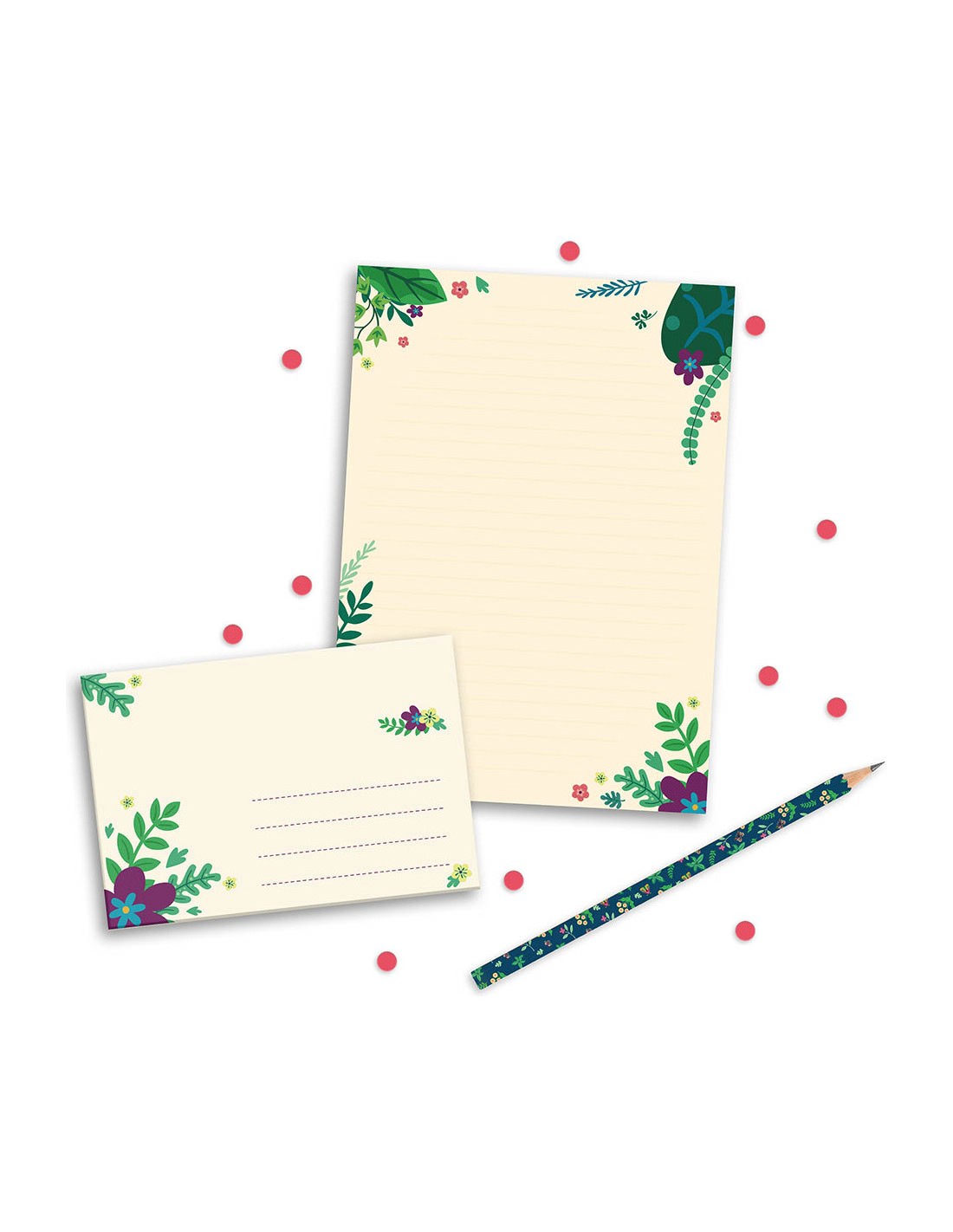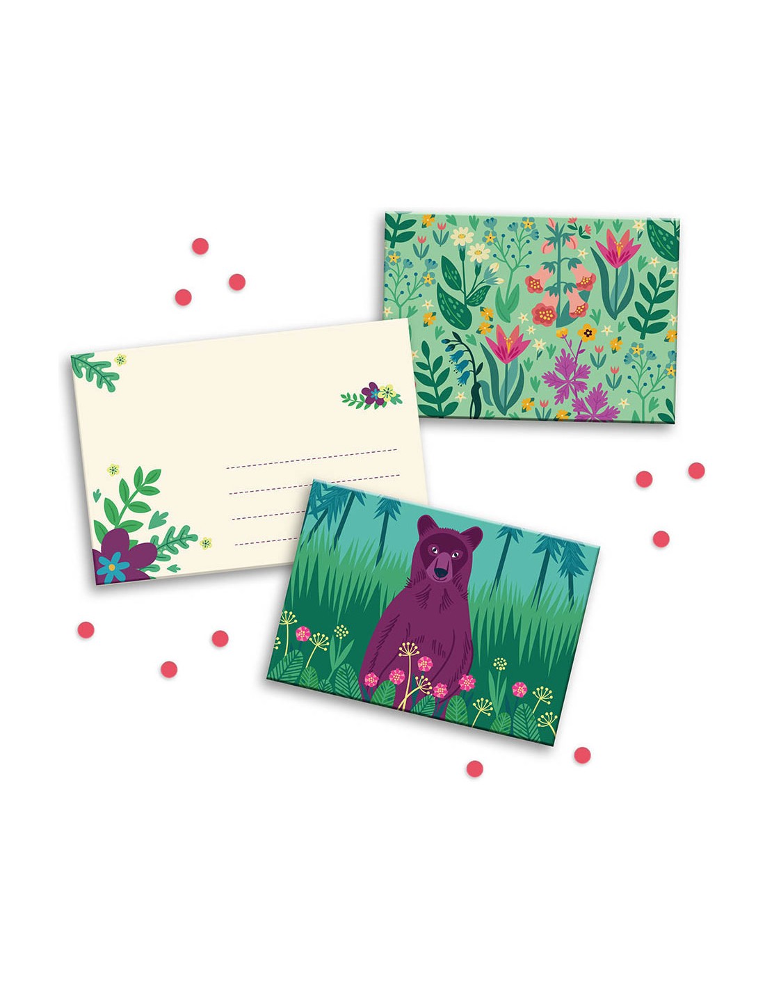 Un joli coffret avec tout le nécessaire pour écrire à ses amis ou sa famille: 15 cartes postales, 15 enveloppes, du papier à lettre, des autocollants, un crayon et des confettis à glisser dans les enveloppes. Idéal aussi pour inviter ses amis à son anniversaire!
