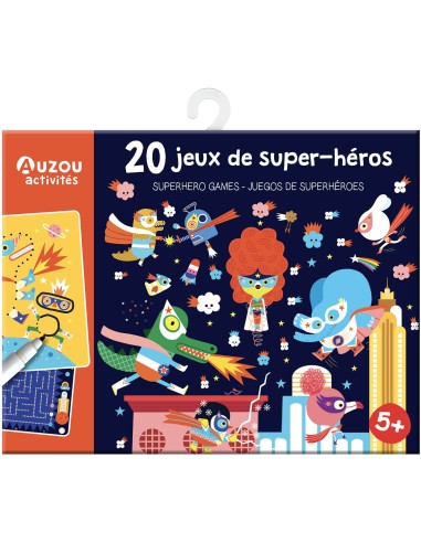 Une jolie pochette de jeux sur le thème des super-héros à partir de 5 ans ! Au recto des cartes, amuse-toi avec des labyrinthes, des points à relier, des cherche et trouve, des différences… Rassemble ensuite les cartes côté verso pour reconstituer un cherche et trouve géant ! 20 jeux plastifiés à faire et à refaire !