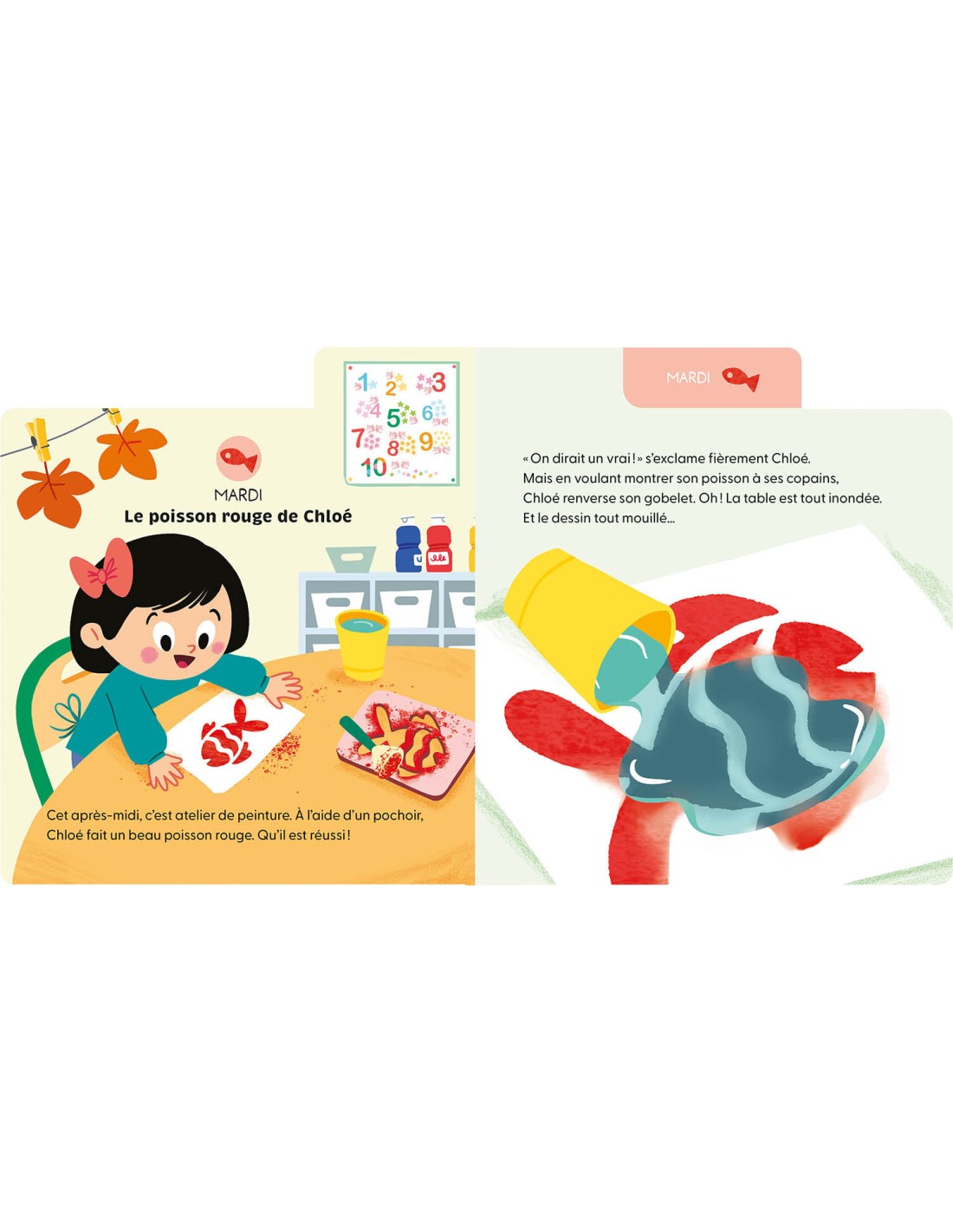 Découvre l'école maternelle avec 7 histoires : une pour chaque jour de la semaine ! Retrouve 7 personnages attachants dans de petites histoires courtes du soir qui raconte les petits tracas du quotidien. Avec ses 7 onglets, l'enfant apprend à se repérer dans le temps et à identifier les jours de la semaine. Un livre incontournable pour préparer à sa première rentrée !