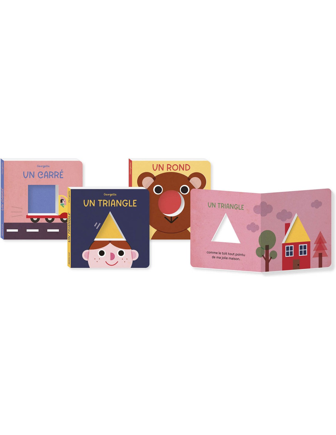 Grâce à ces trois livre, l'enfant appréhende les différentes formes autour de lui. Un format adapté aux petites mains pour un toucher qui facilite l’apprentissage. Un joli coffret 1er âge.