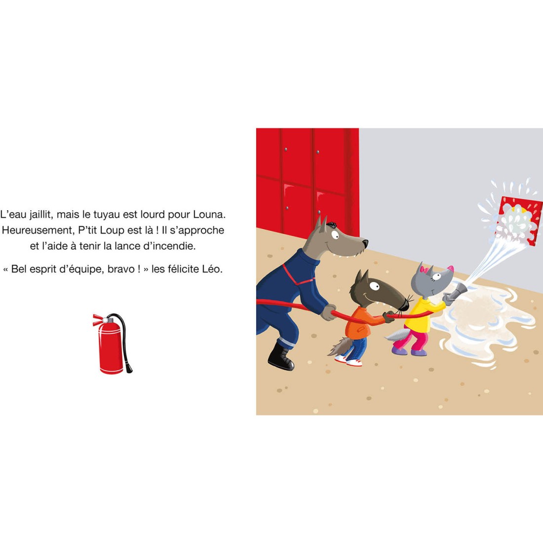 P’tit Loup visite une caserne de pompiers pour la première fois ! Il est accompagné par un pompier qui lui montre les camions, les uniformes, etc. P’tit Loup est fasciné !