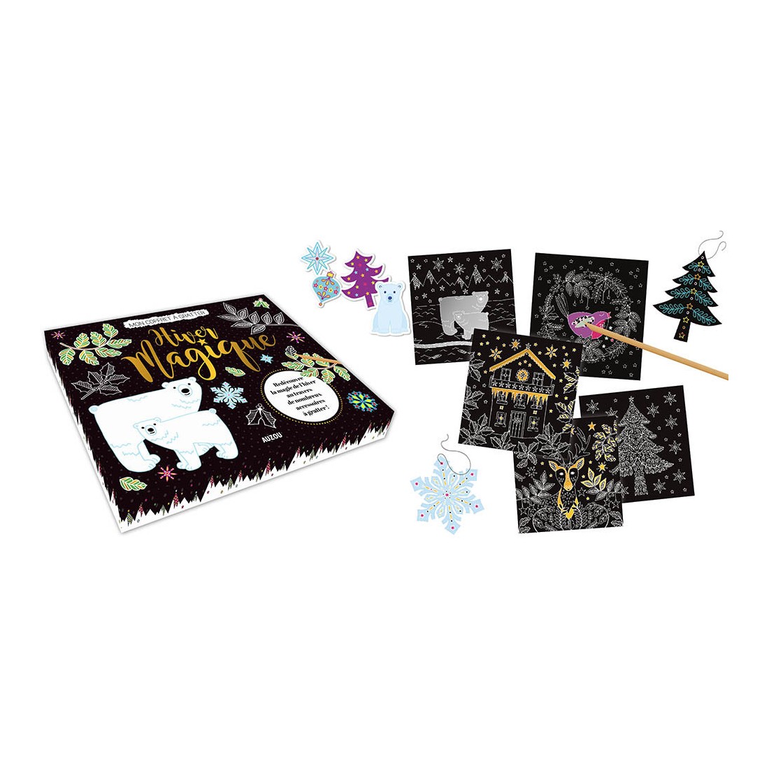 Un coffret qui surfe sur La tendance des loisirs créatifs : les cartes à gratter. Autour du thème féérique, les enfants vont pouvoir s'amuser à créer de magnifiques décorations : 2 cartes à gratter dorées, 2 cartes à gratter argentées, 2 cartes à gratter colorées, 5 suspensions à gratter et 20 autocollants. Super activité pour nos artistes en herbe ! ?