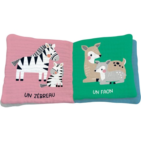 A chaque page, il pourra toucher une nouvelle matière et visualiser une dizaine d’images colorées d'animaux : une excellente façon d’apprendre aux tout-petits à prononcer de nouveaux noms et de participer à l’éveil de leur sens tactile.