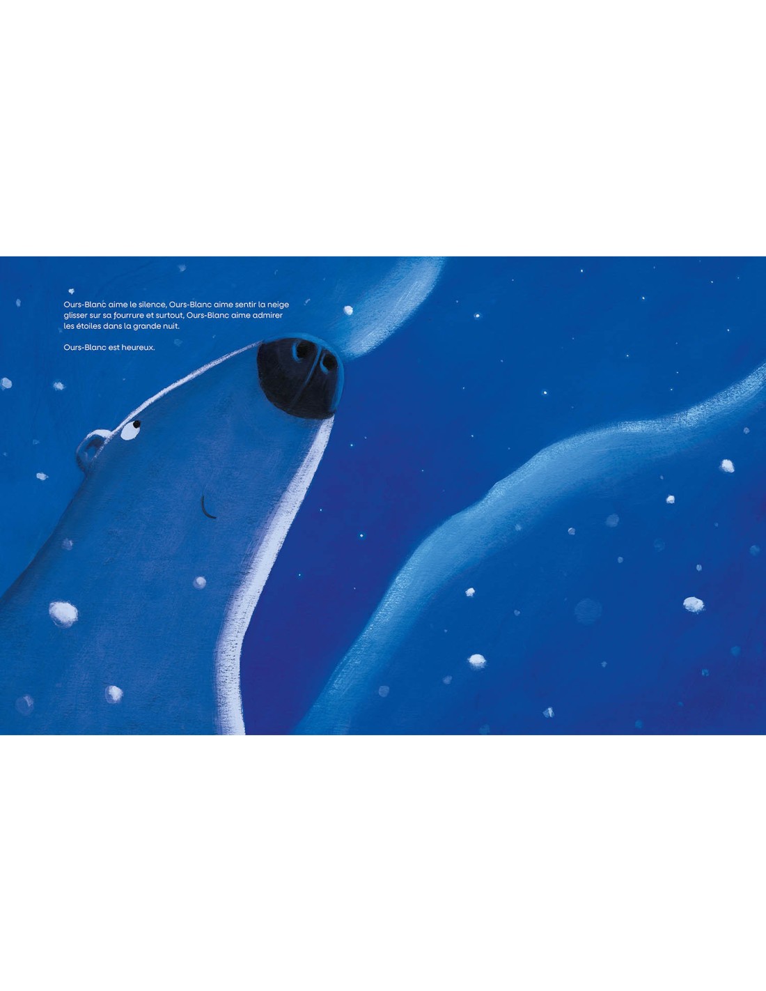 Ours Blanc vit sur la banquise. Il est heureux dans son univers blanc et tranquille. Jusqu'au jour où Bam ! Aaron le kangourou tombe littéralement du ciel. Entre l'ours placide et le kangourou survolté une drôle d'amitié va se développer...