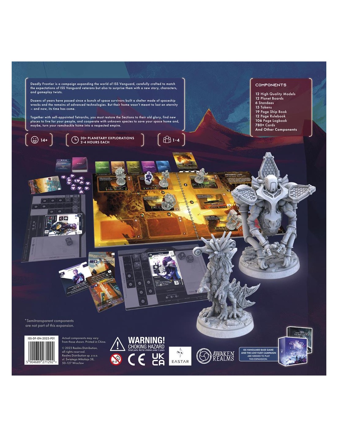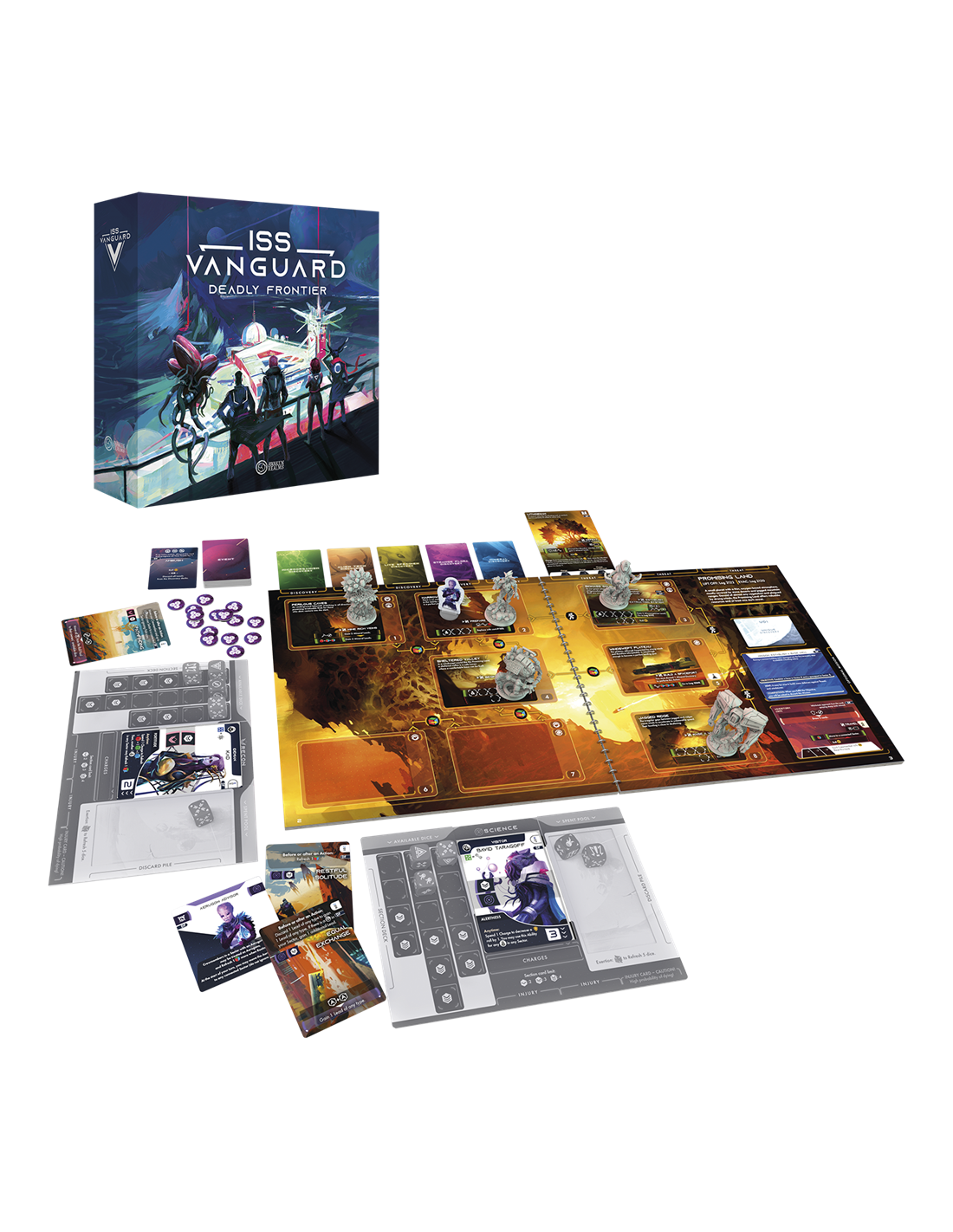 Iss Vanguard : Deadly Frontier Campaign est une extension jouable de 1 à 4 joueurs dès 14 ans pour des parties d'environ 90 minutes, édité par Awaken Realms.Des dizaines d'années se sont écoulées depuis qu'un groupe de survivants de l'espace a construit un abri fait d'épaves de vaisseaux spatiaux et de restes de technologies avancées. Mais leur maison n'était pas censée durer une éternité - et maintenant, son heure est venue.