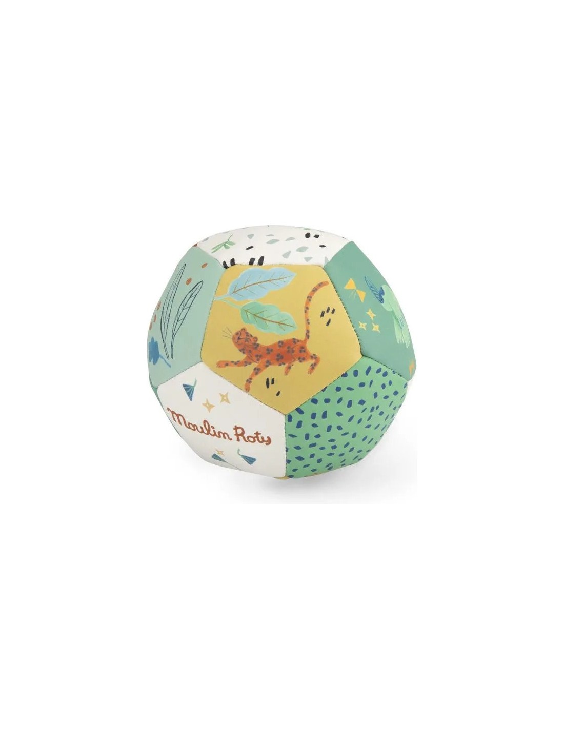 Balle souple La forêt Mawa - Moulin Roty : un petit ballon coloré tout léger pour amuser bébé. Une balle souple en vinyle pour jouer à l'intérieur comme à l'extérieur de la maison, avec des faces colorés et illustrées avec les personnages de la collection