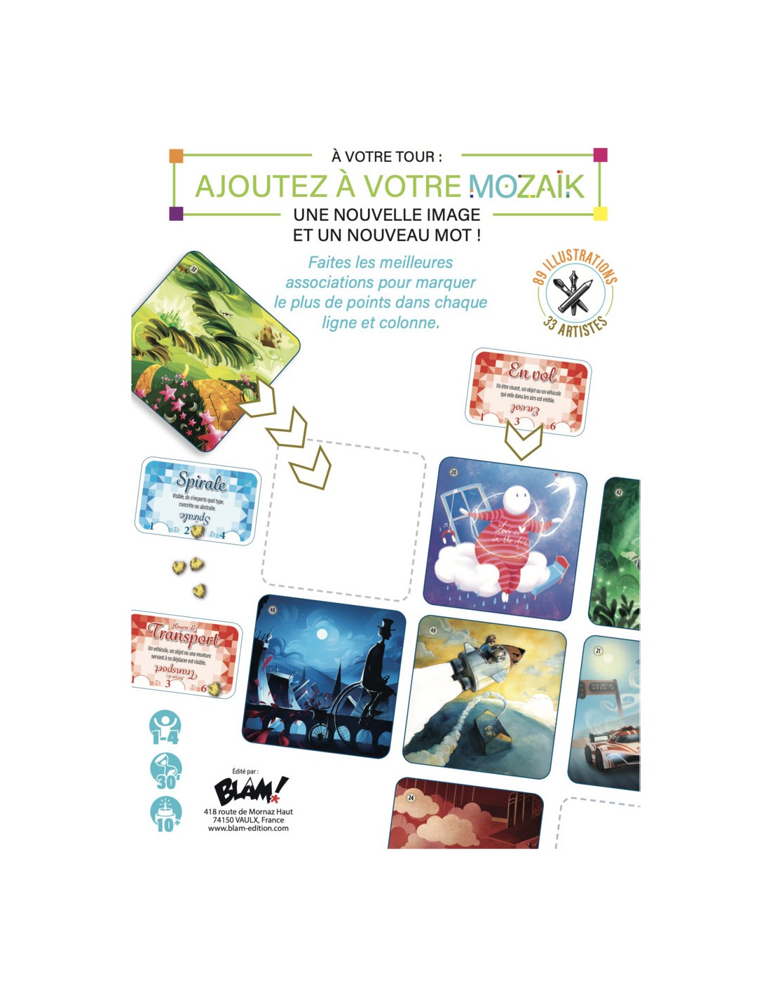 Piochez des images et des mots puis composez judicieusement votre grille en trouvant les liens qui les unissent. Faites preuve d'observation, de créativité, et saisissez l'opportunité de jouer au bon moment afin d'obtenir la meilleure harmonie possible !
