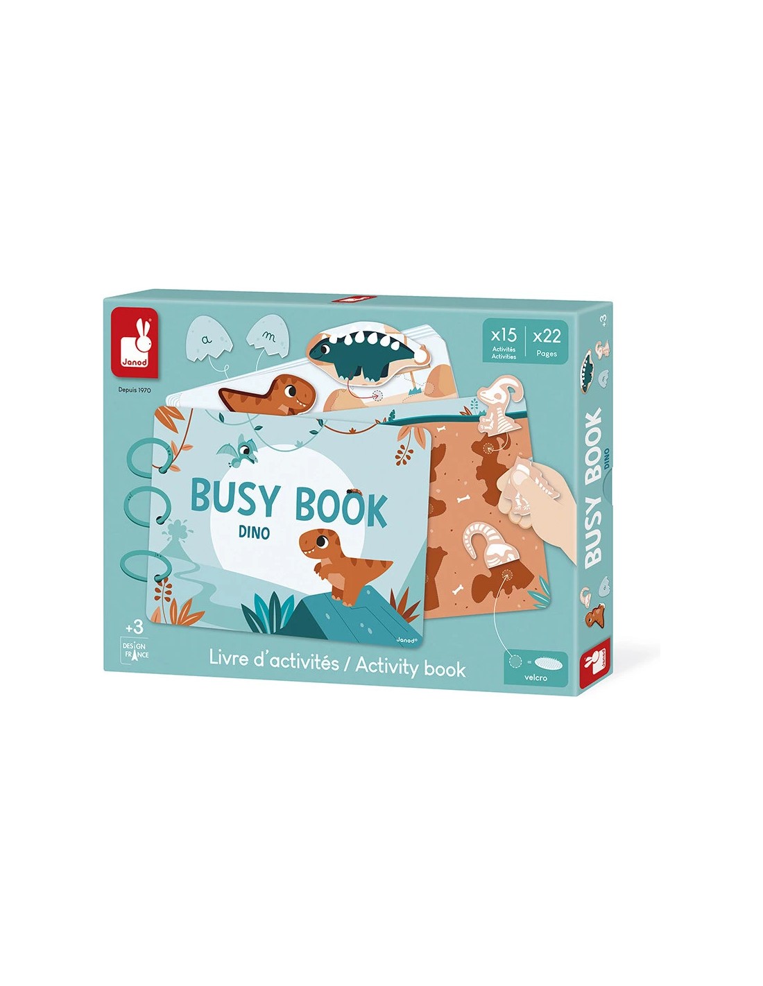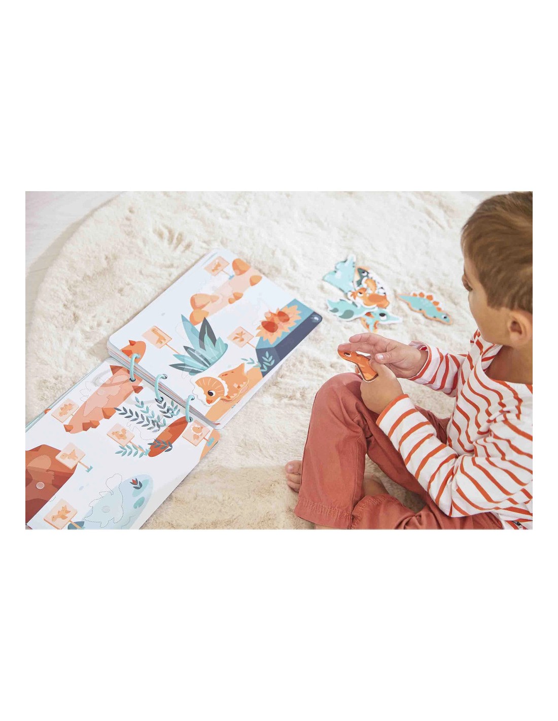 Bienvenue chez les dinos ! Ce busy-book composé de 22 pages d'activités fait découvrir aux tout-petits dès 3 ans l'univers fascinant des dinosaures. Ils apprennent à reconnaître les différentes espèces, à comprendre où elles vivaient, quelle taille elles faisaient... Il y a plein de choses à observer et à manipuler ! Les enfants retrouvent leurs dinosaures préférés : le T-Rex, le Tricératops, le Diplodocus… et même le Ptérodactyle !