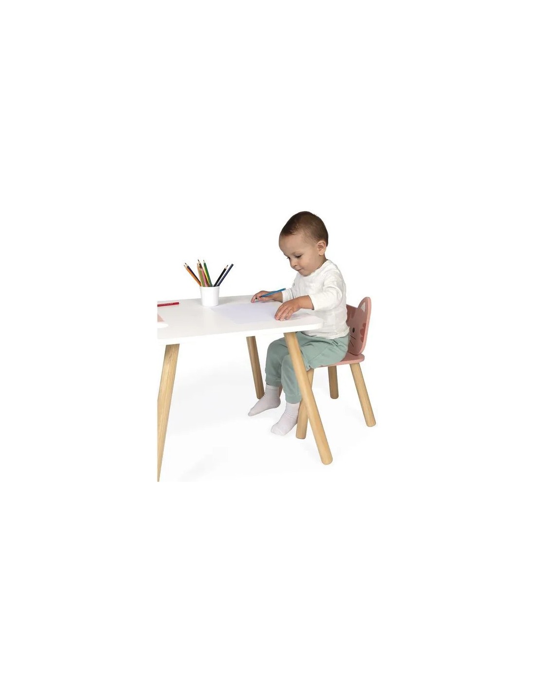 Impossible de résister à cette adorable chaise en bois en forme de petit chat ! Avec son air attendrissant, ce dernier deviendra le fidèle compagnon de jeu des enfants ! À la fois pratique et décorative, cette chaise transforme le coin des tout-petits en un espace chaleureux et ludique. Elle offre également un confort optimal et une assise stable pour une utilisation en toute sécurité.