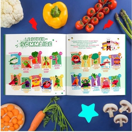 Ce livre de recette incitera les enfants à aimer les légumes, représentés comme des super-héros costumés avec des super-pouvoirs! Ludique et accentuant l'autonomie, ce livre de recettes est idéal comme cadeau pour filles/garçons de 4 à 10ans.