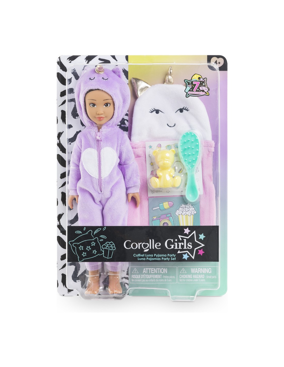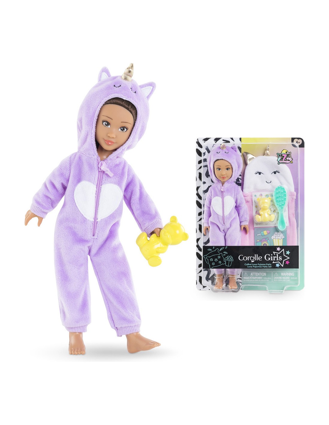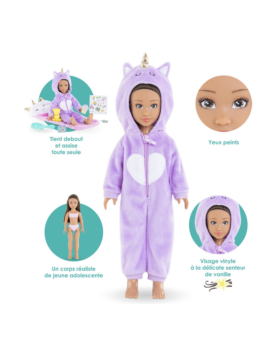 Ses yeux sont peints et elle possède de longs cheveux bruns. Elle porte une combi-pyjama licorne mauve toute douce. Poupée mannequin à la peau mate, Luna a un corps réaliste de jeune adolescente. Elle tient assise et debout toute seule. Les Corolle Girls sont déclinées en plusieurs modèles et disposent de coffrets dressing pour encore plus de jeux ! Dès 4 ans. Corolle Girls; mes meilleures amies