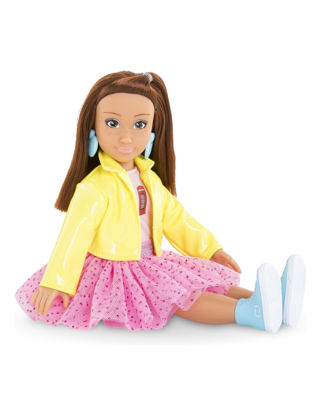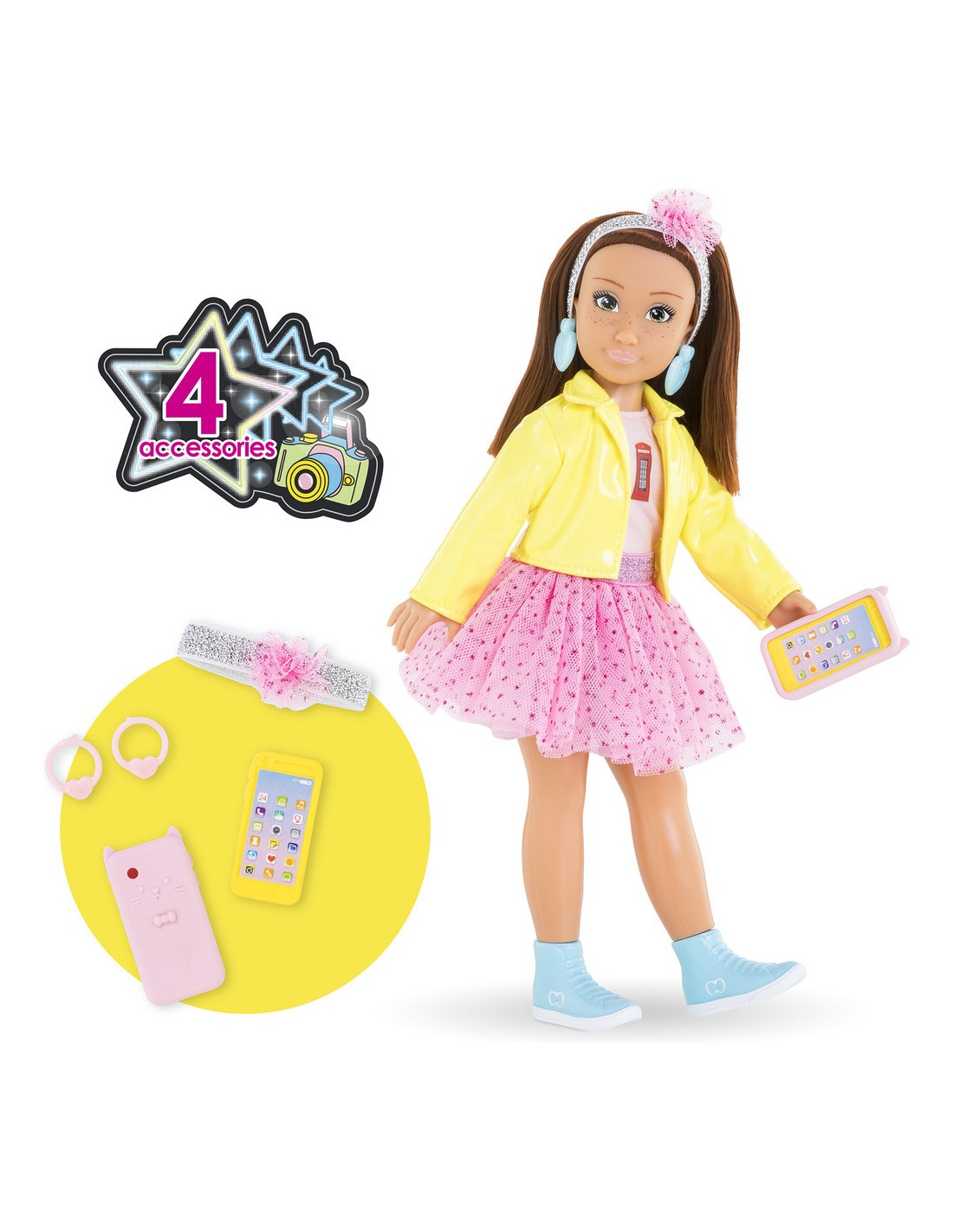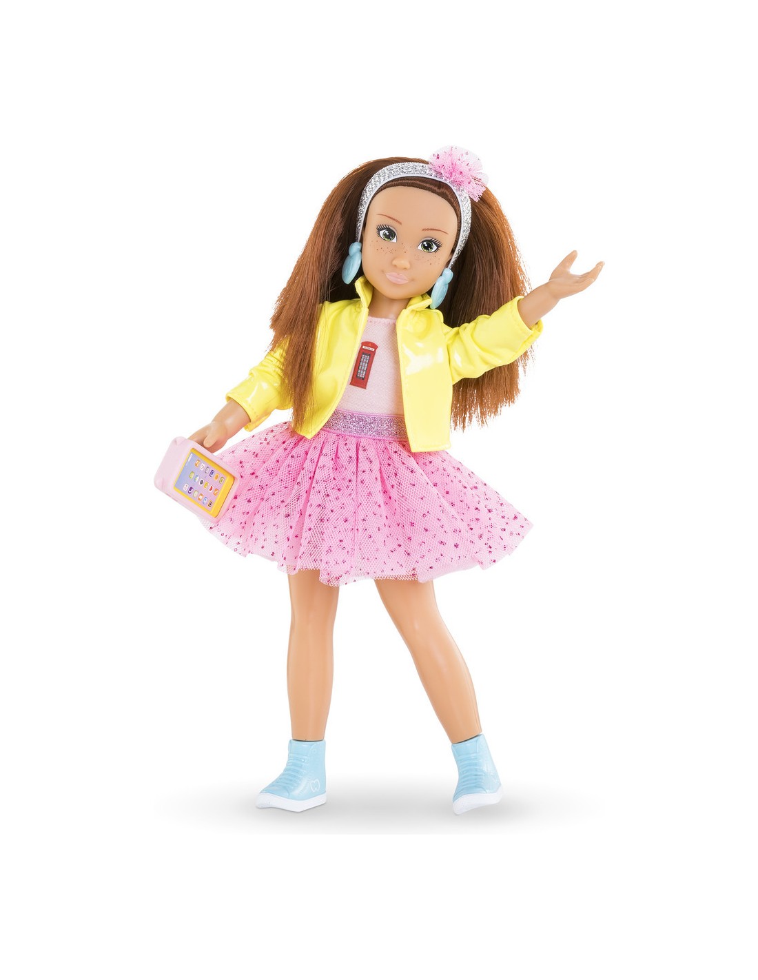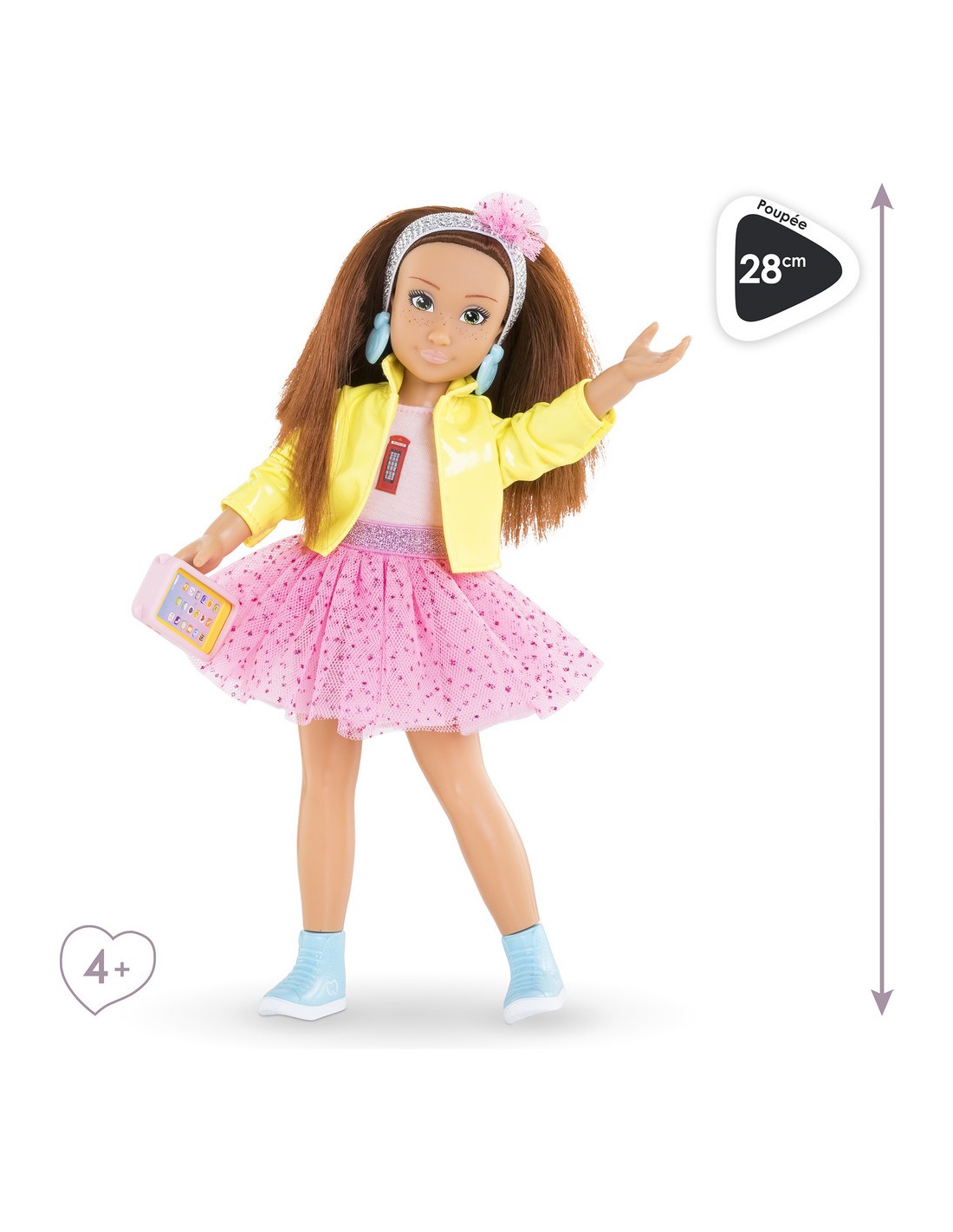 Le coffret Zoé Fashion Week Londres est composé de Zoé, une poupée mannequin de 28 cm, et de 4 accessoires : 1 paire de boucles d'oreilles amovibles, 1 téléphone mobile, 1 coque pour téléphone portable et 1 bandeau pour les cheveux. Zoé a un joli visage naturel aux traits fins qui sent bon la vanille.