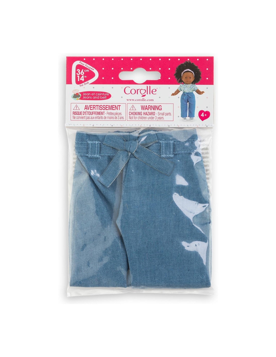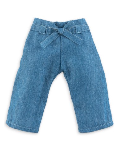 La taille haute réhaussée d'un joli nœud et la coupe di jean et ceinture pour poupée ma Corolle fait de ce pantalon un must-have de la saison !