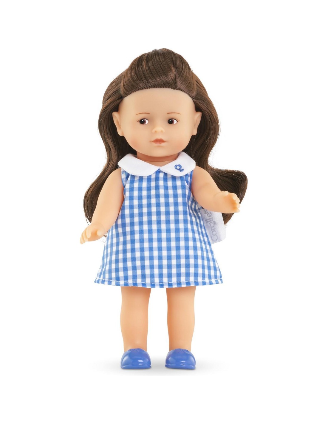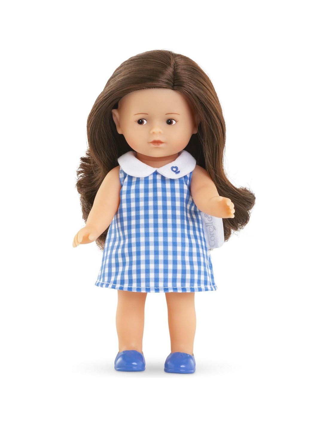 Elle est habillée d’une robe à carreaux vichy bleu et blanc avec un col "Claudine". Cette poupée Mini Corolline porte également une culotte blanche et une paire de chaussures bleu moulées assorties. Mini Corolline Romy est le cadeau idéal pour un goûter d'anniversaire, une petite surprise...