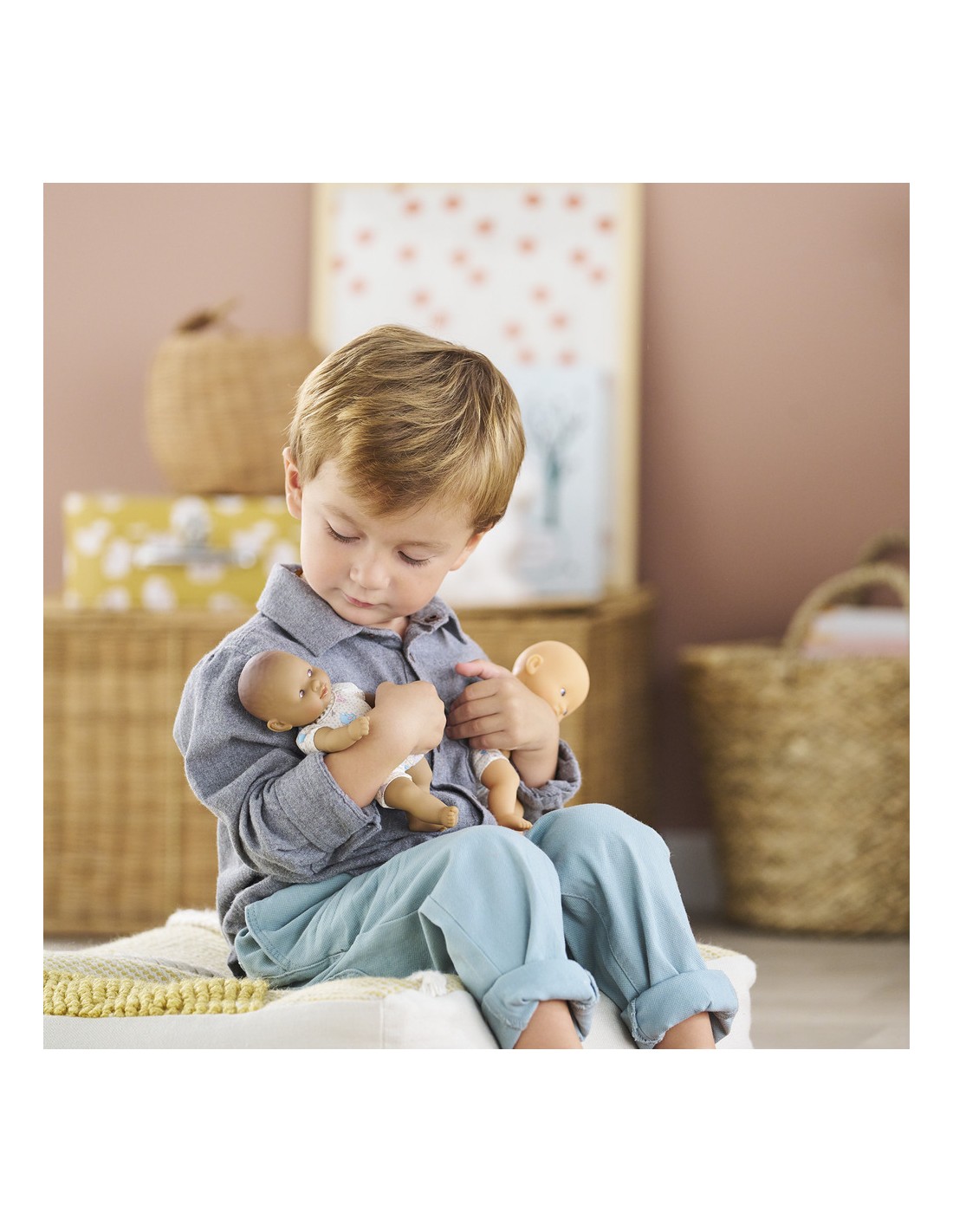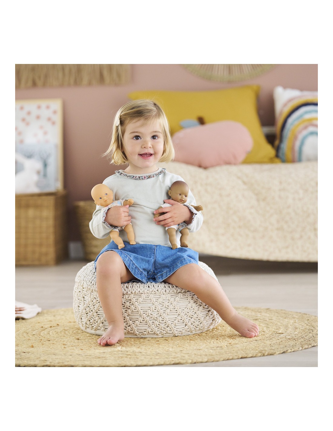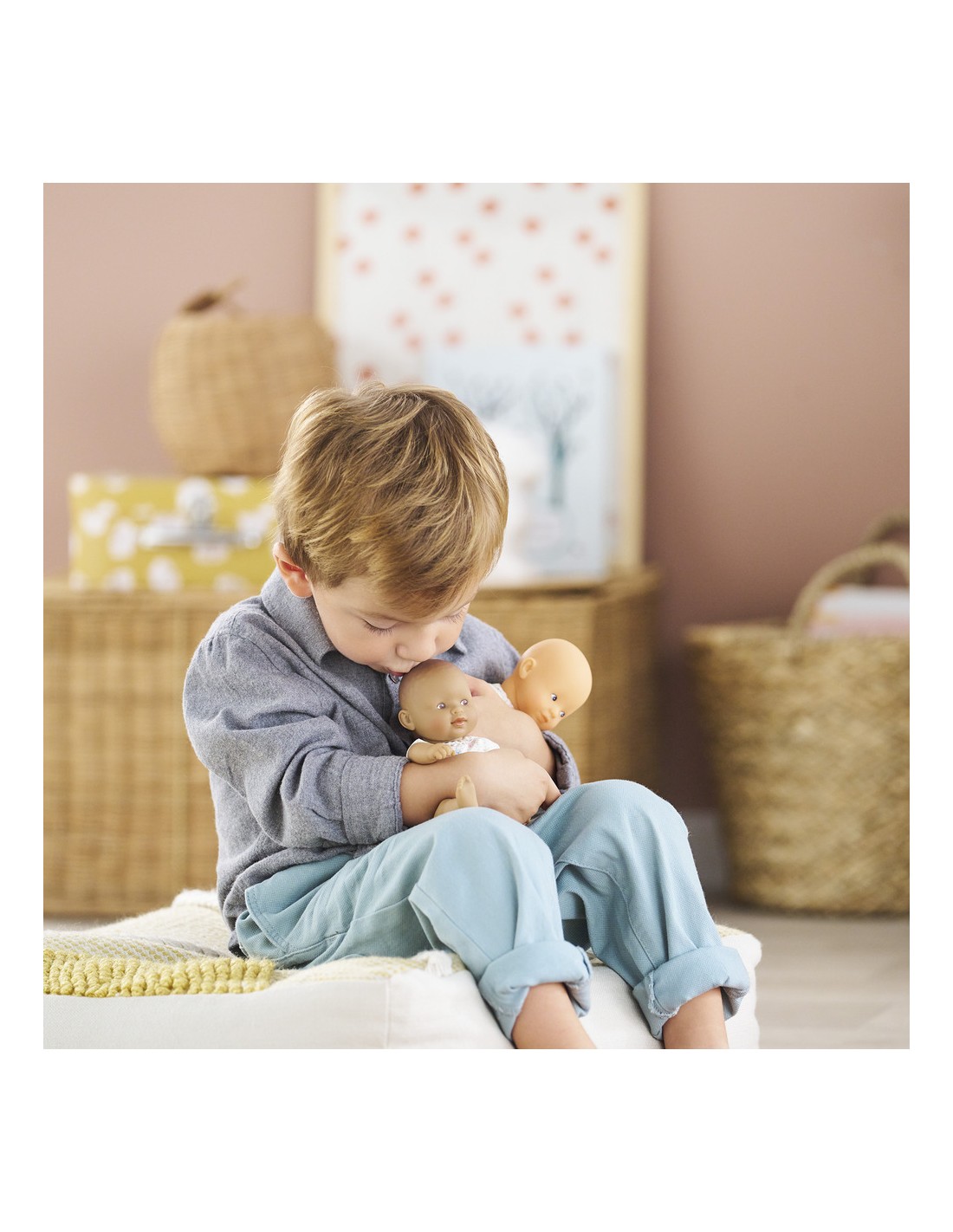 Mini Calin Lapins Yeux Marron, un adorable compagnon de voyage ! Mini Calin est un mini poupon de 20 cm léger et facile à emmener partout. Ce petit poupon à la peau mate et les yeux marron, peints sur son visage. Son visage, ses bras et ses jambes, à la délicate senteur de vanille, sont en vinyle doux au toucher. Il possède une jolie toile de corps à imprimé lapins.
