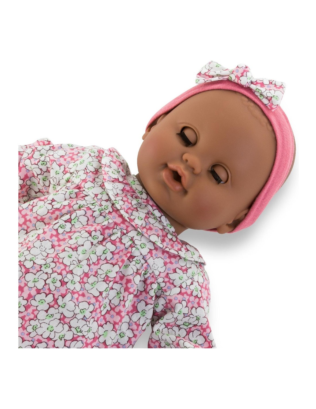 Son visage, ses bras et ses jambes, à la délicate senteur de vanille, sont en vinyle doux au toucher. Son corps est souple pour faciliter ses mouvements et elle tient assise. Son pouce peut se maintenir dans sa bouche. Avec ses yeux dormeurs, elle fait dodo quand on la couche sur le dos.