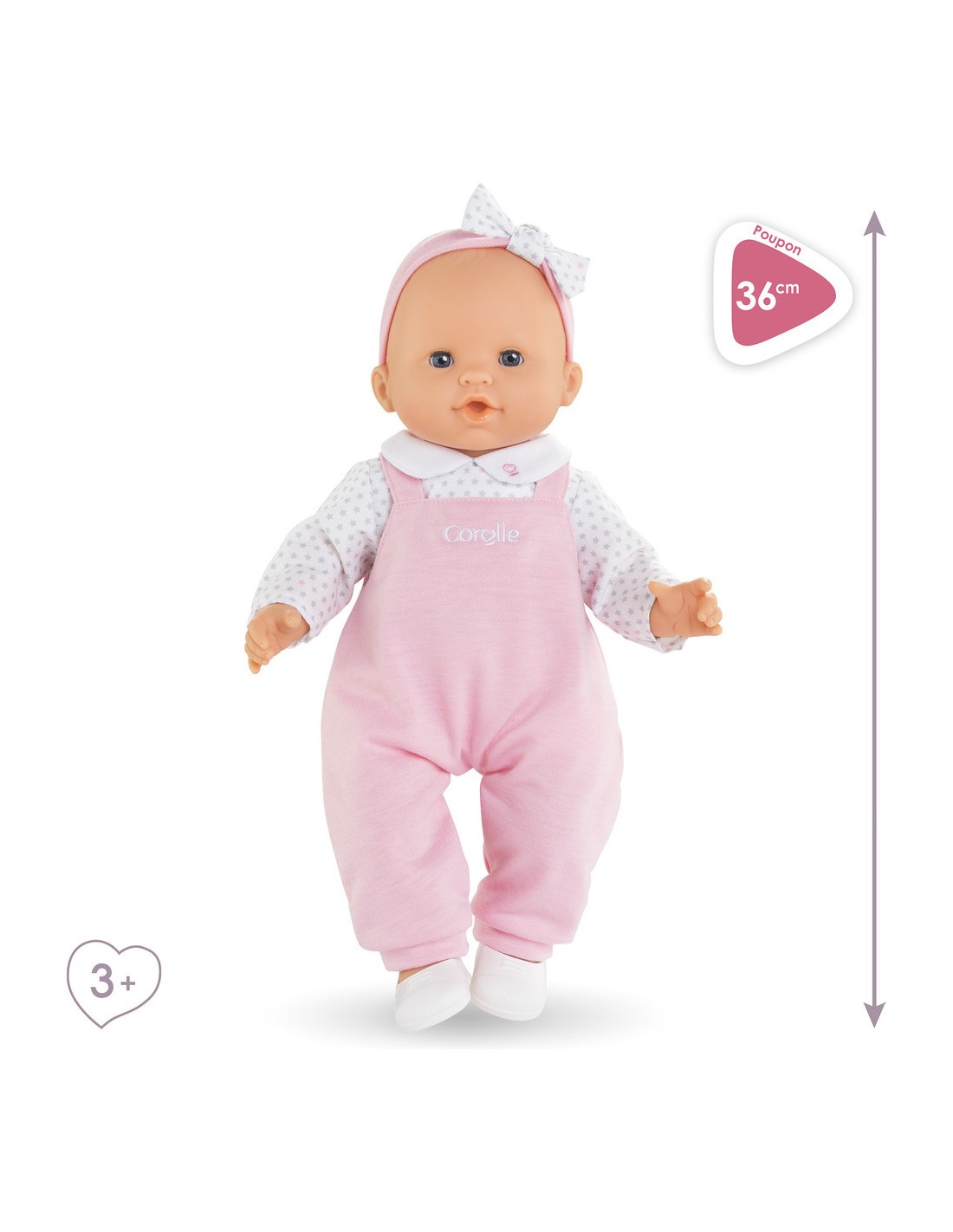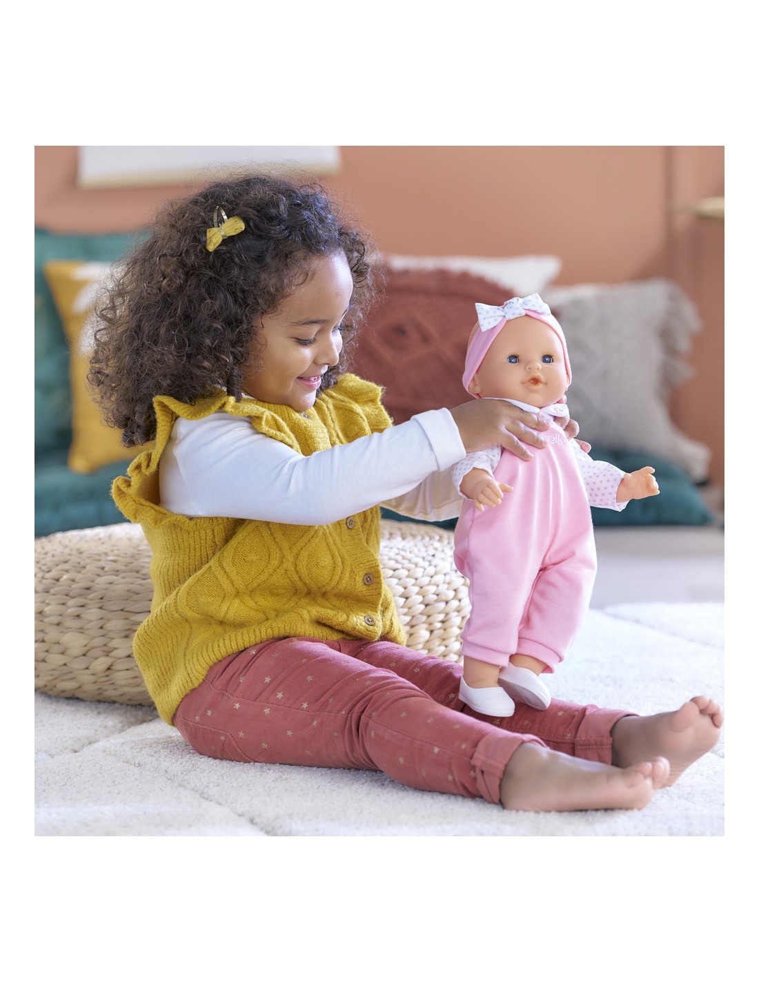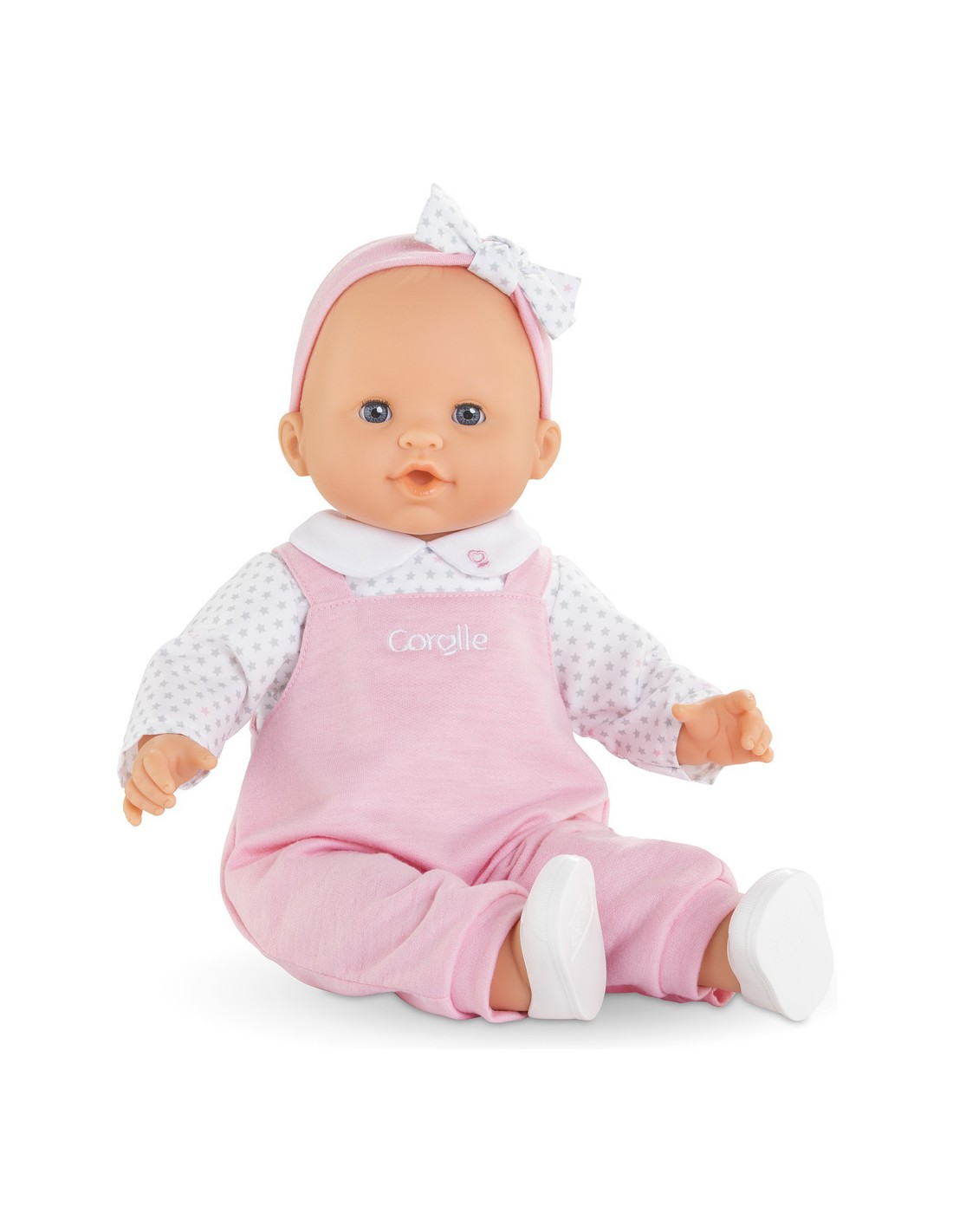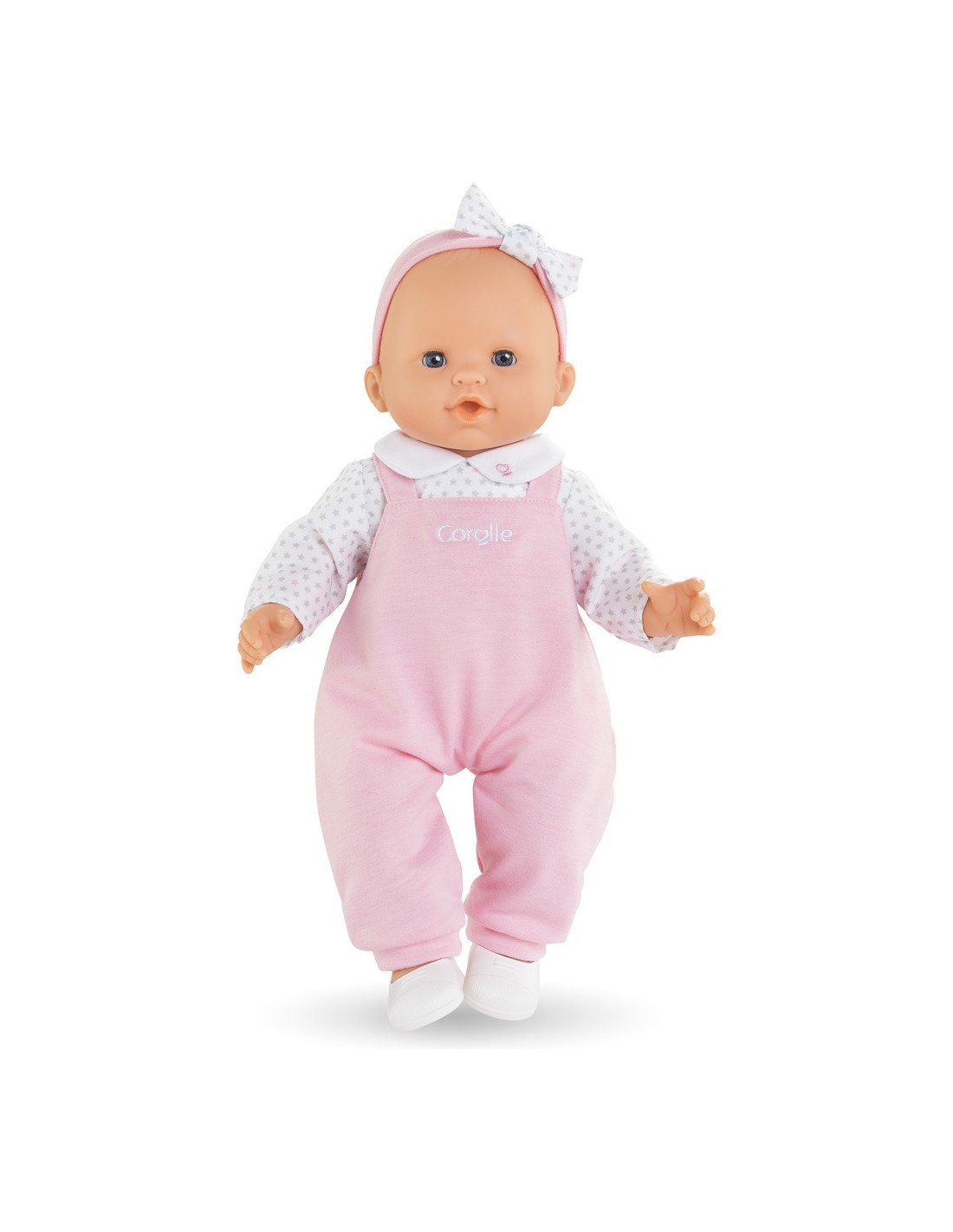 Lise est habillée d’une jolie salopette rose et d'un polo blanc à manches longues, au motif étoilé avec un col claudine. Pour parfaire sa tenue, Lise est coiffée d’un bandeau rose au noeud étoilé assorti et elle porte une paire de ballerines blanches. Lise dispose d'une collection complète de vêtements et d'accessoires dans la gamme mon grand poupon Corolle, pour imiter les gestes du quotidien et s'inventer des scénarios de jeu multiples et variés.