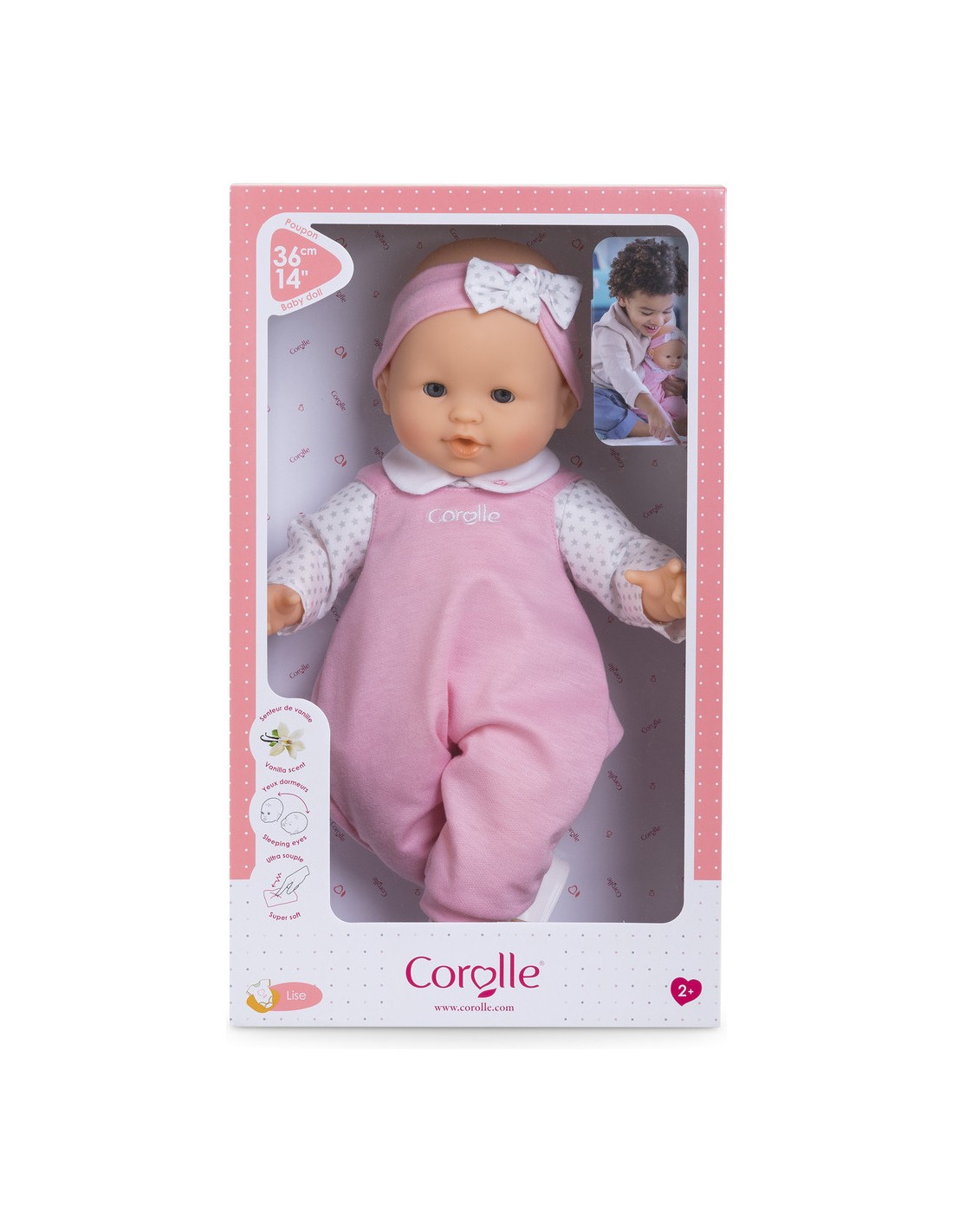 Lise possède tous les attributs d'un poupon Corolle : son visage, ses bras et ses jambes sont en vinyle doux au toucher et possèdent une délicate senteur de vanille réconfortante. Son corps est souple pour faciliter ses mouvements et elle tient assise. Son pouce peut se maintenir dans sa bouche.