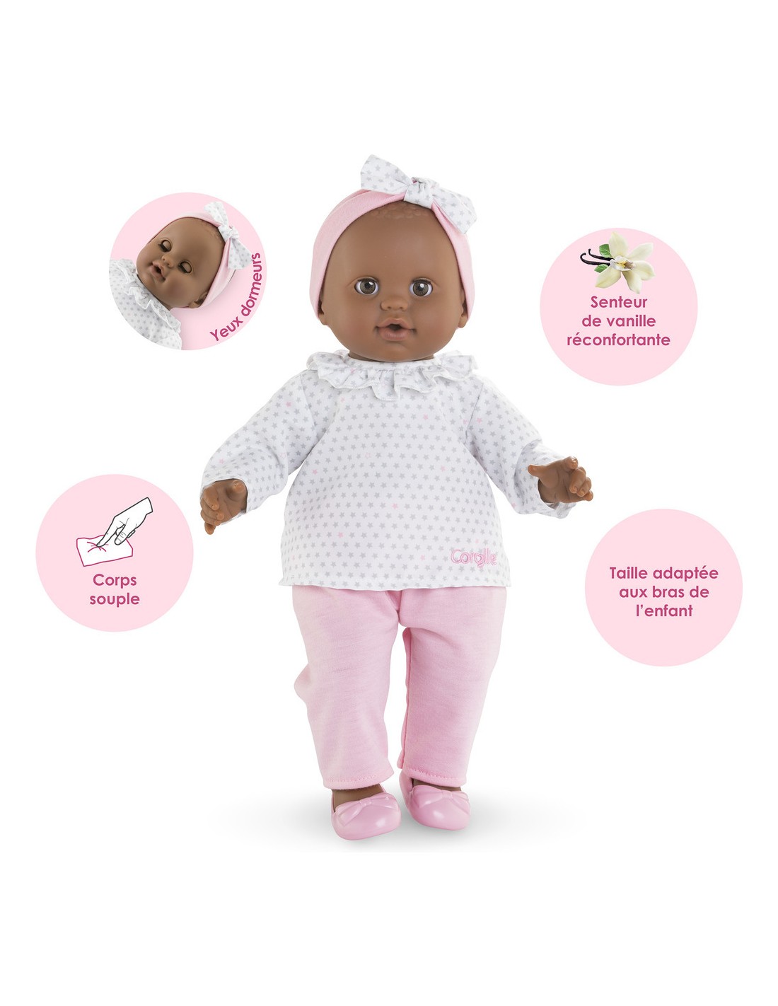 Mon grand poupon Corolle, pour faire comme les grands ! Ce poupon ne tient pas debout tout seul. Dès 2 ans.