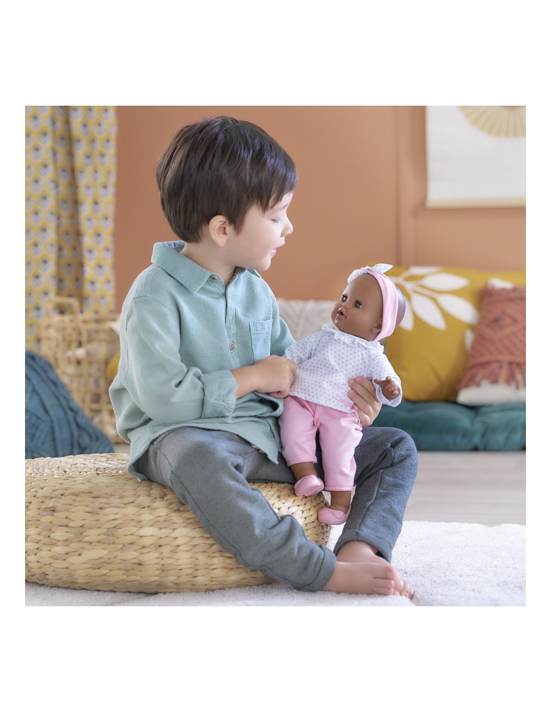 Elle mesure 36 cm, une taille parfaitement adaptée aux petits bras de l'enfant pour la câliner, la materner et reproduire les gestes qui font devenir grand.