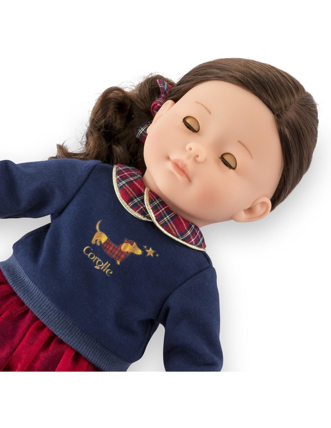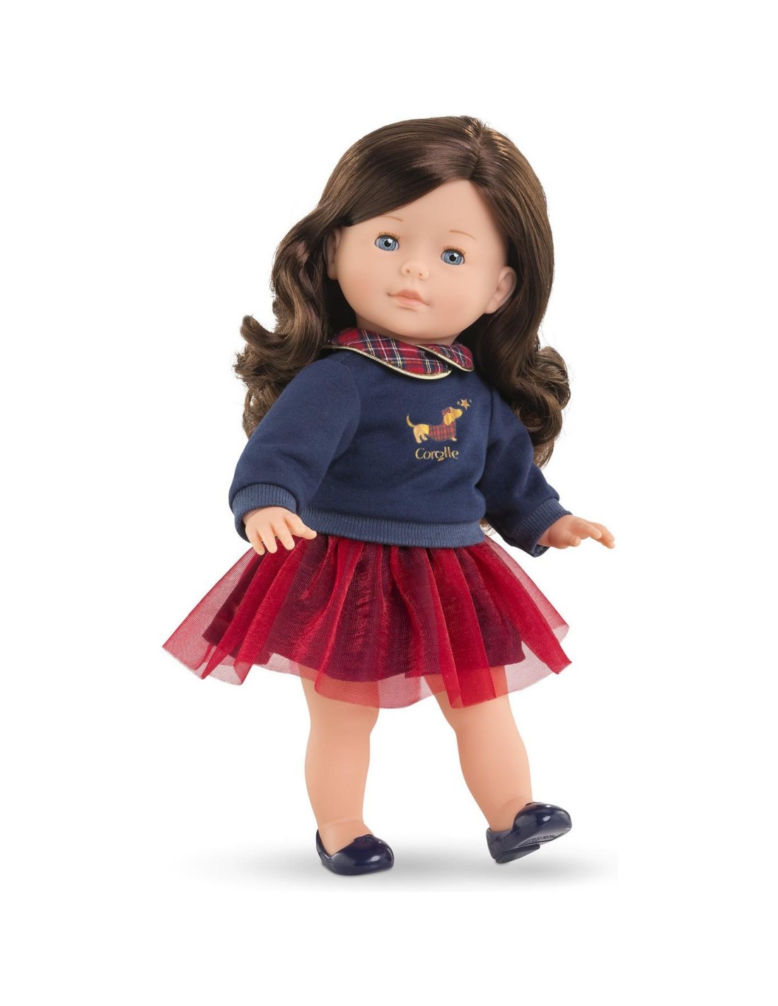 Elle est habillée d'une magnifique jupe en tulle rouge toute douce. Pour parfaire sa tenue, elle porte une paire de ballerines bleu marine et est coiffée d'un joli chouchou au tissu écossais, assorti à sa tenue. Perle Corolle en Fêtes, poupée ma Corolle de 36 cm, en Édition Limitée, a un corps souple « effet » sous-vêtements et de longs cheveux châtains bouclés, faciles à coiffer.